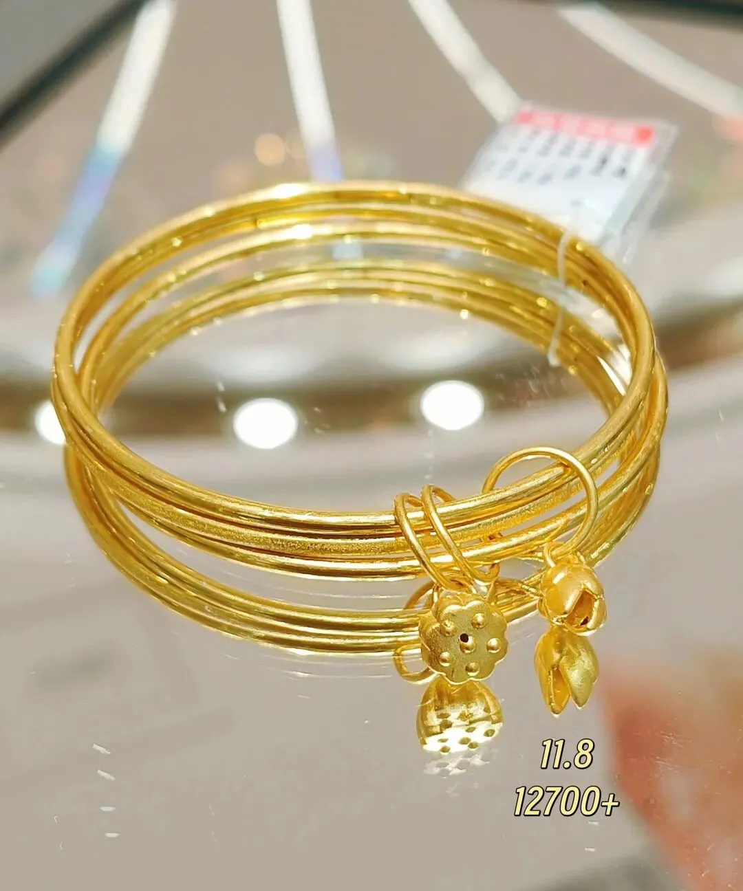 当然了 如果你预算充足 那种带吊坠的也很不错 我见过一款是带了小铃铛和花朵吊坠的 整体重量11.8克 价格12700+ 说实话 刚看到这个价格的时候我是有点肉疼的 但仔细看它的设计 那种细节处的用心 那种戴在身上的存在感 又会觉得这个钱花得不冤
