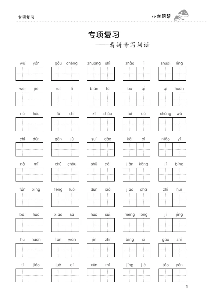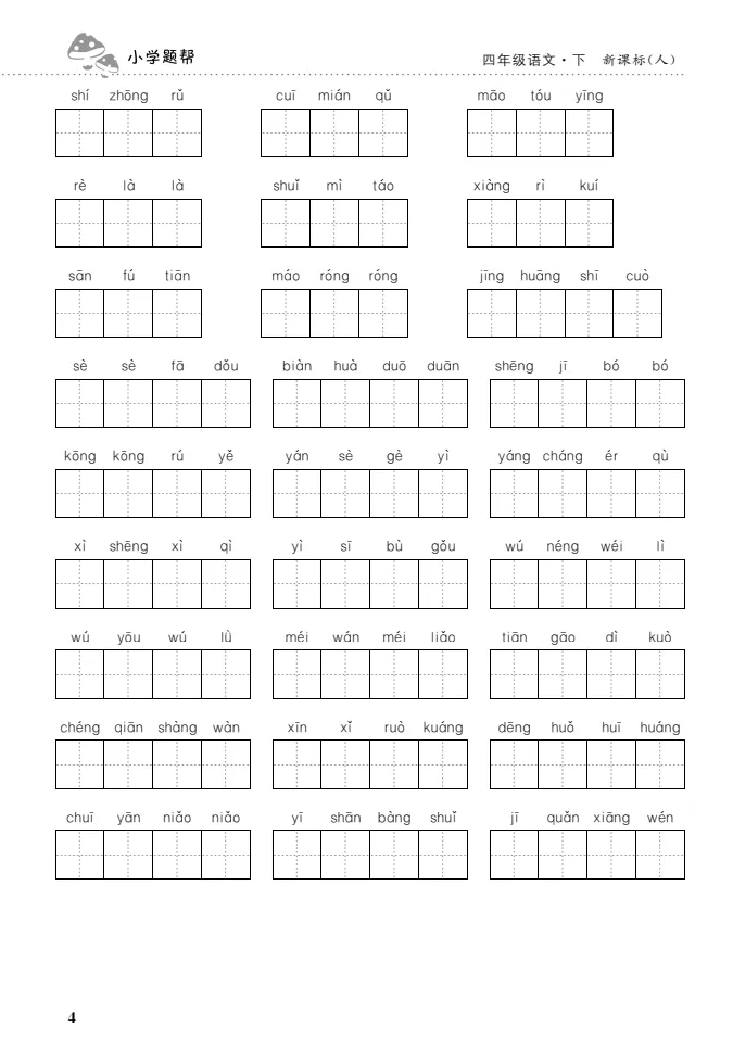 语文四年级(下册)《看拼音写词语》,文章末尾有完整电子版查看方式。