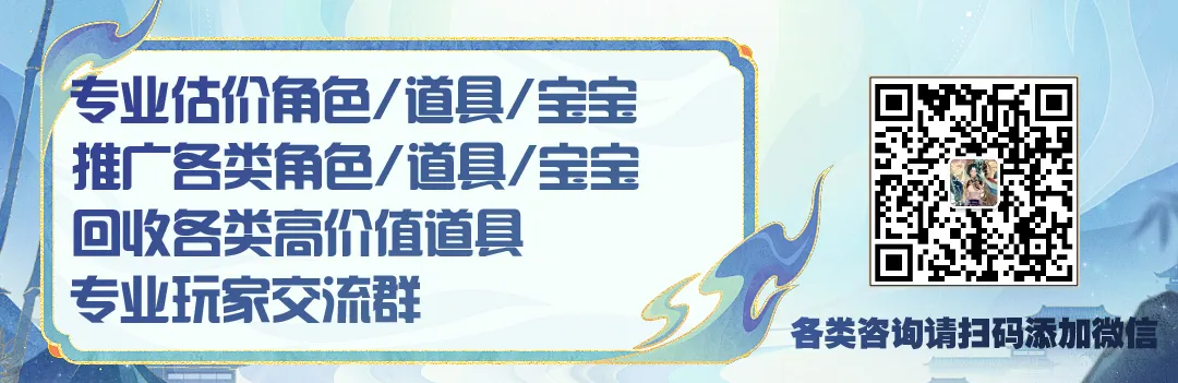 如果你也有想尽快出手的角色,可以联系扫上方二维码联系小编,有偿推荐,收费合理。估价+收藏+群+公众号推荐,助您早日脱坑。