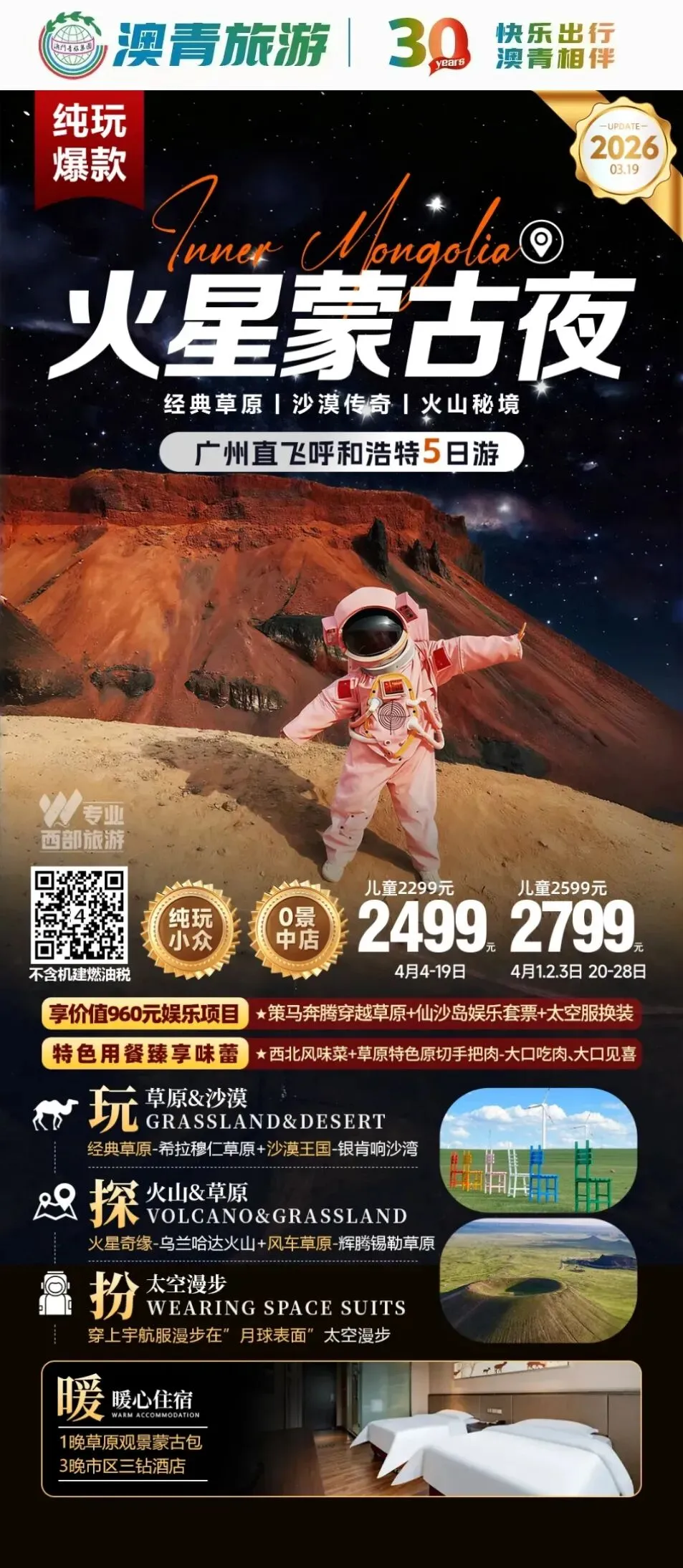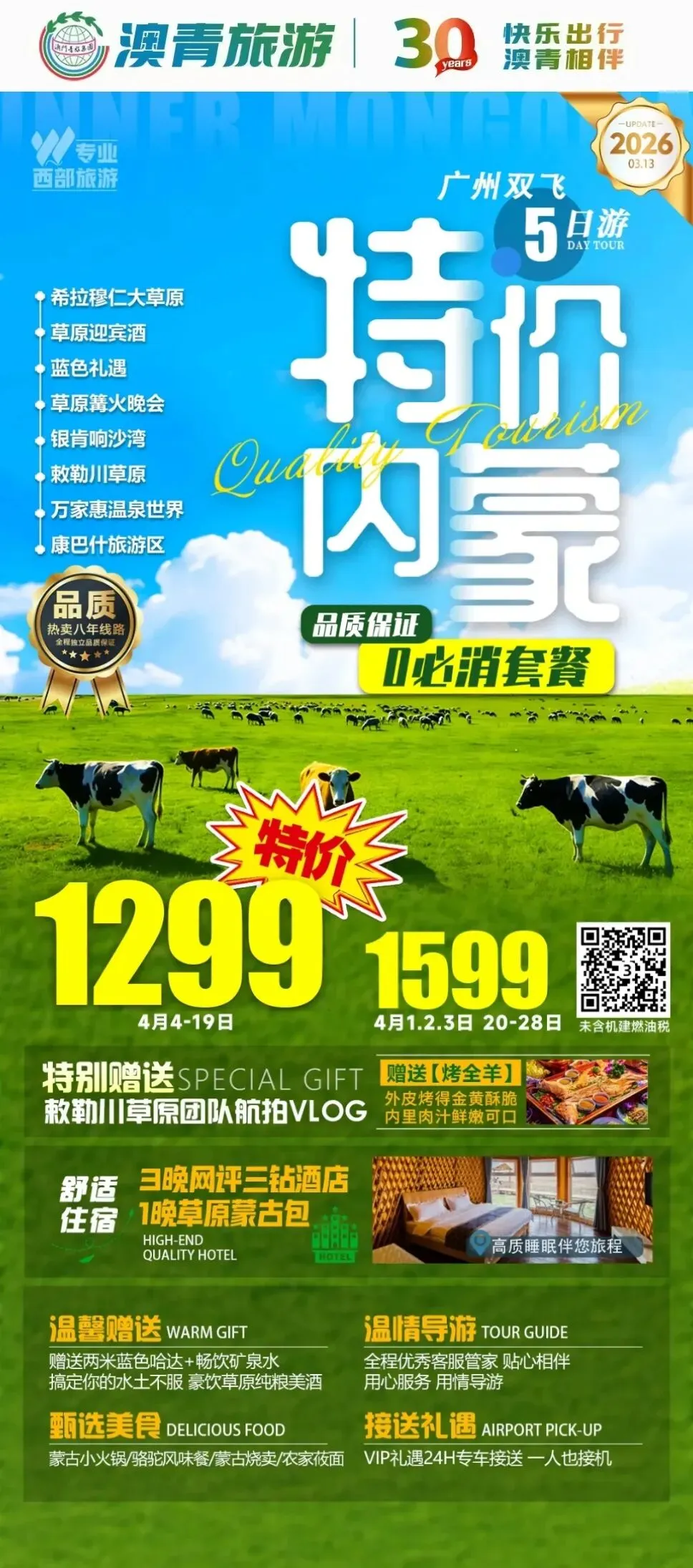 🔥特价内蒙古双飞5天-赠烤羊‼