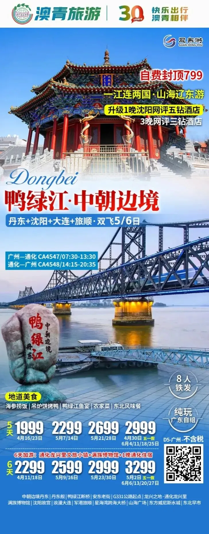 广州飞【鸭绿江·中朝边境D5】双飞5/6天