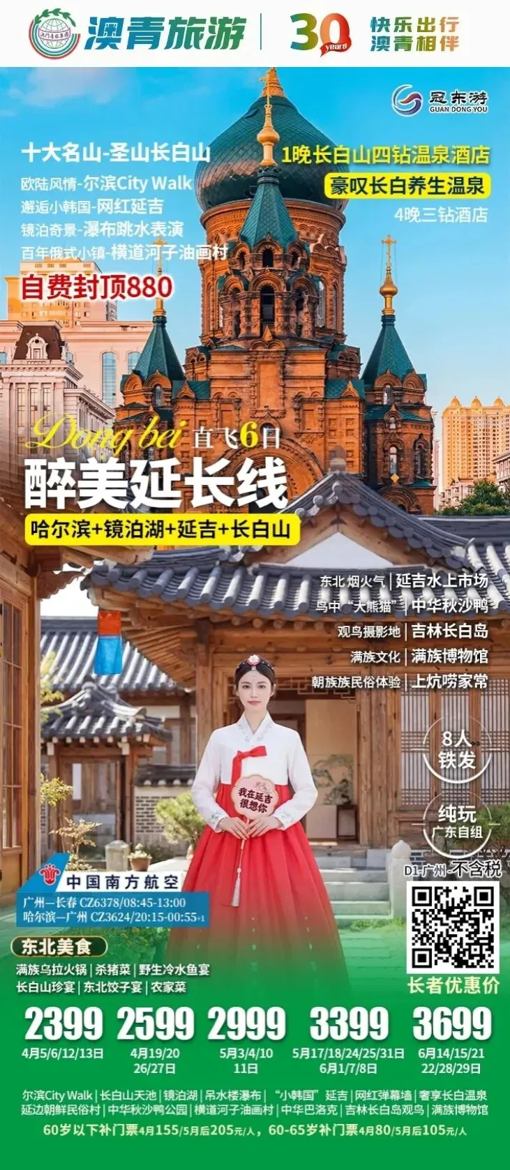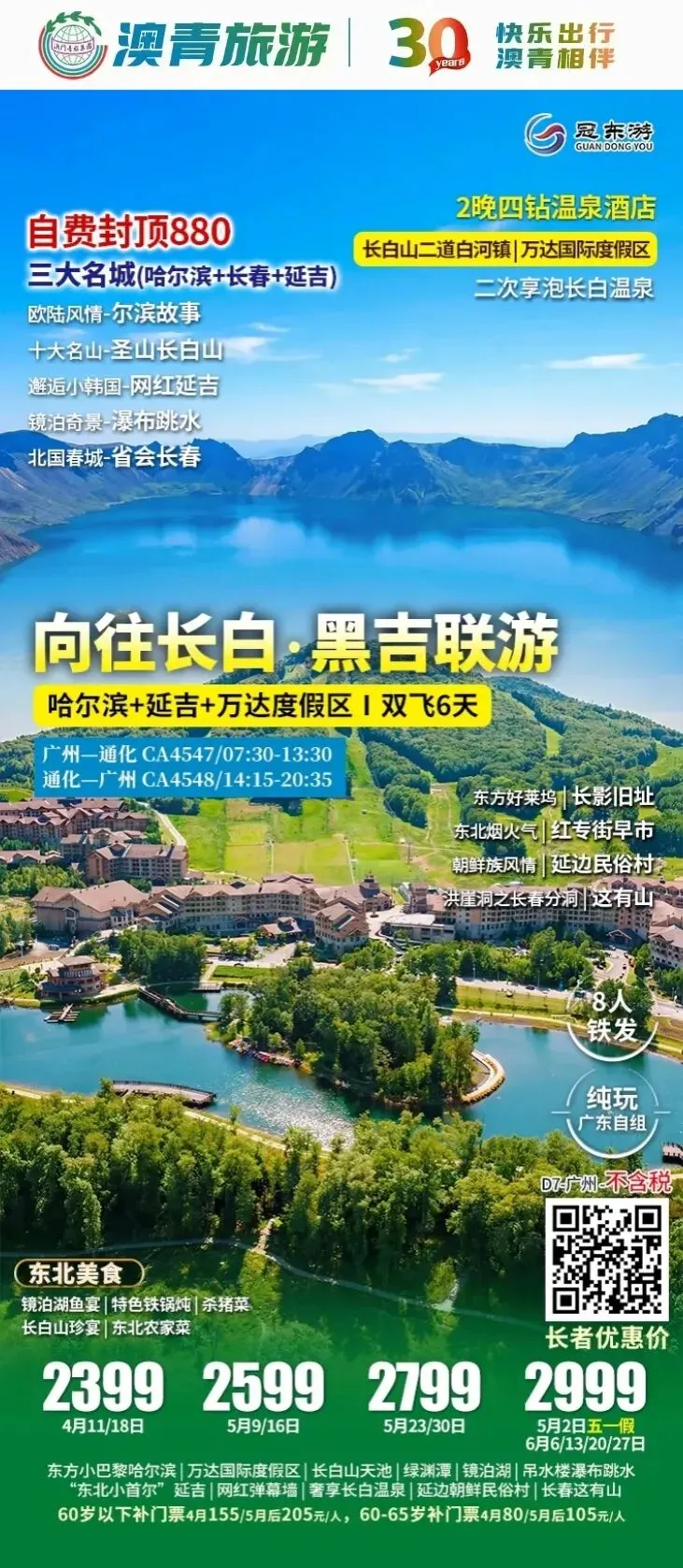 广州飞【向往长白·黑吉联游D7】双飞6天