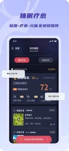 软件无需穿戴设备,利用手机传感器精准记录睡眠过程,生成专属睡眠质量报告,直观呈现入睡时间、深睡时长、易醒次数等数据,科学解读你的睡眠状况,改善睡眠质量,重拾深度睡眠的愉悦,让每一天都充满活力!