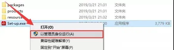 2.打开解压后的文件夹,右键点击,以管理员身份运行set-up