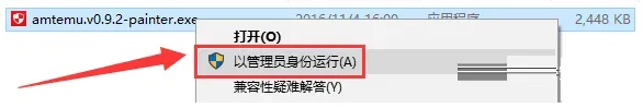 6.打开安装包内的注册机文件夹,右键管理员身份运行amtemu.v0.9.2-painter注册机程序。