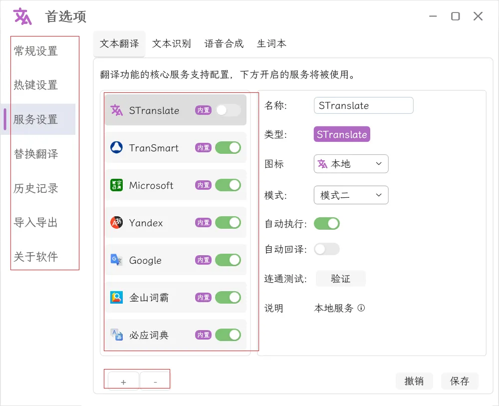 翻译源:支持增加百度、阿里、DeepSeek、Open AI 等通道;支持微信 OCR 识别、语音合成及生词本同步。 -