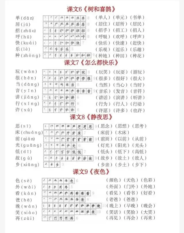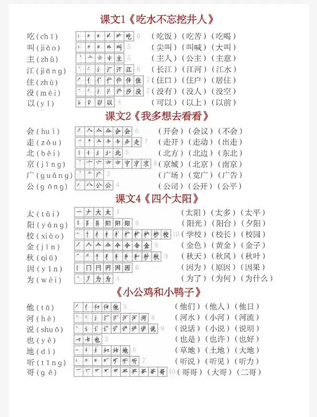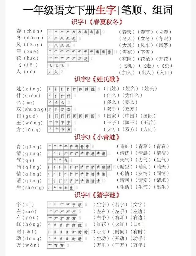 部编版一年级下册生字(笔顺组词)贴1.pdf