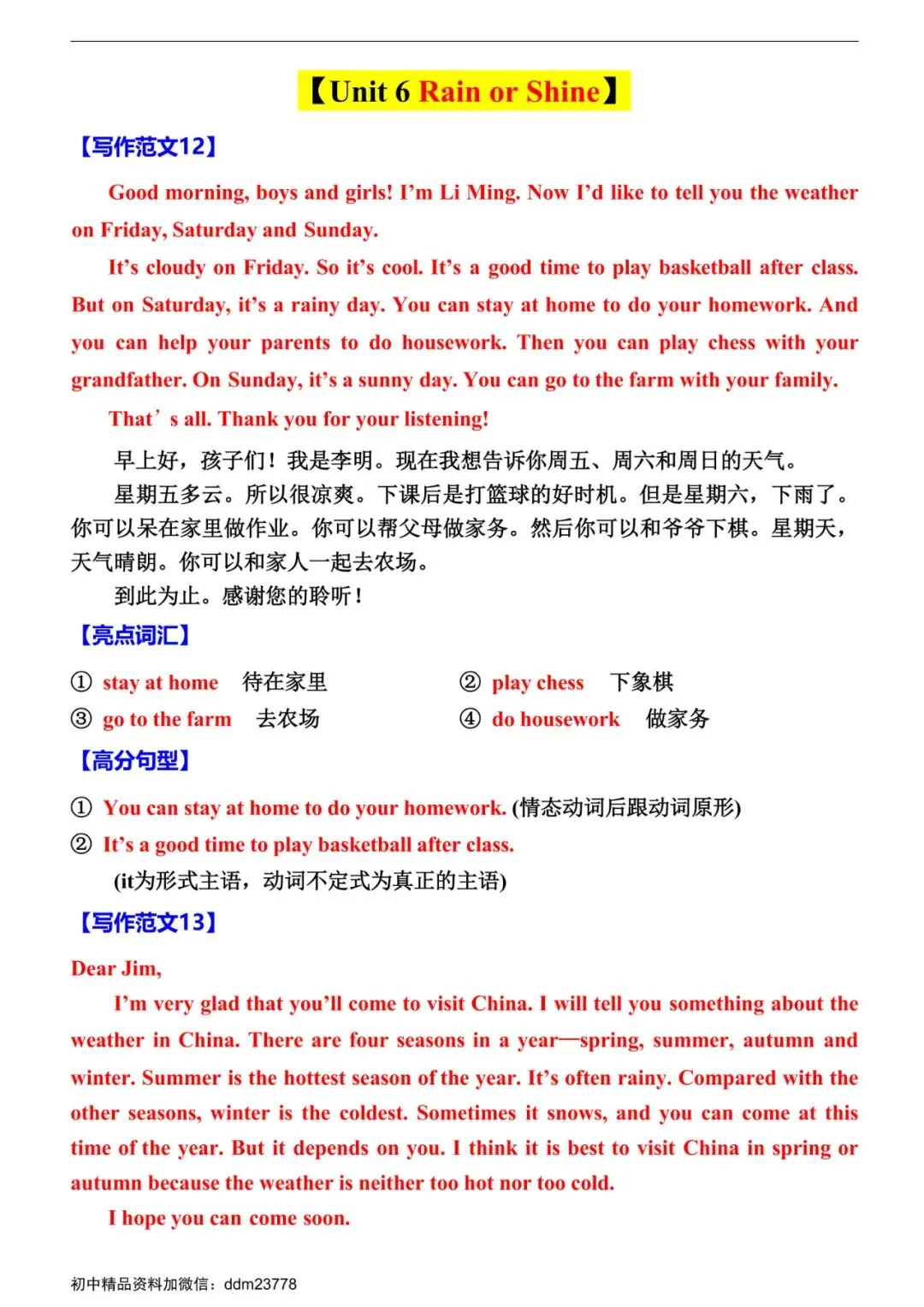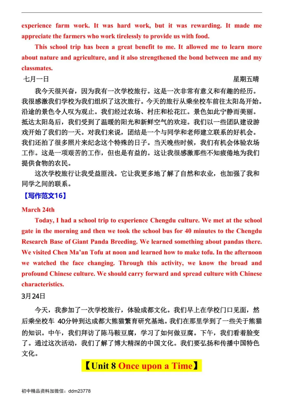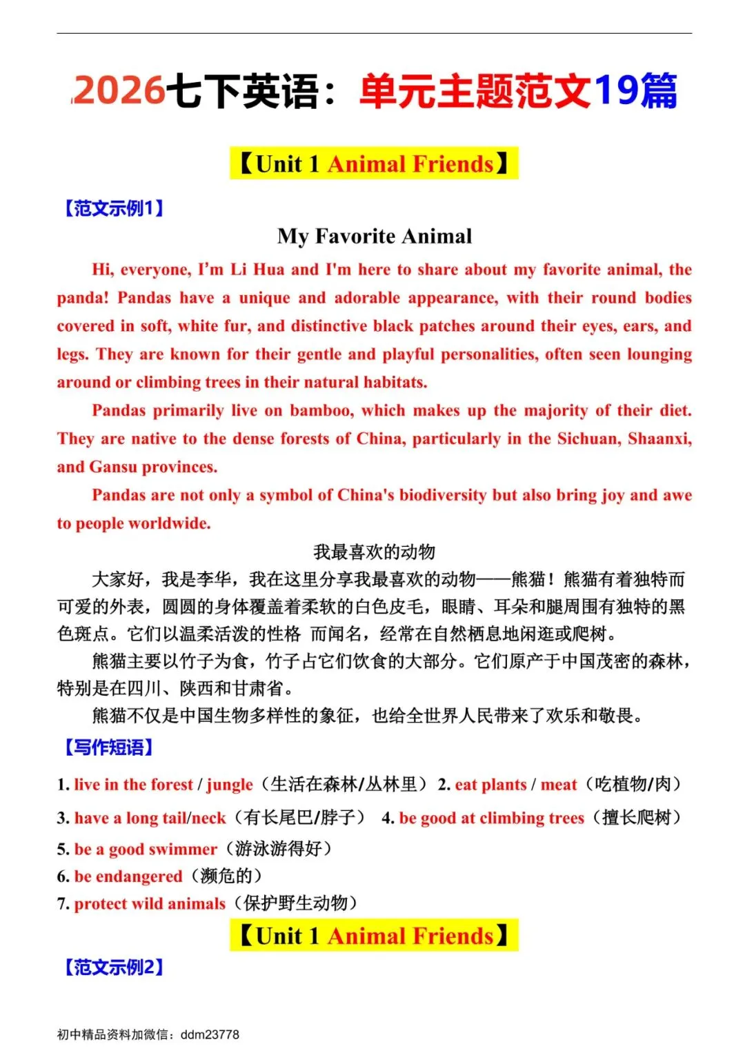 今日老师为大家整理了:七年级下册英语单元主题范文 19 篇电子版可打印