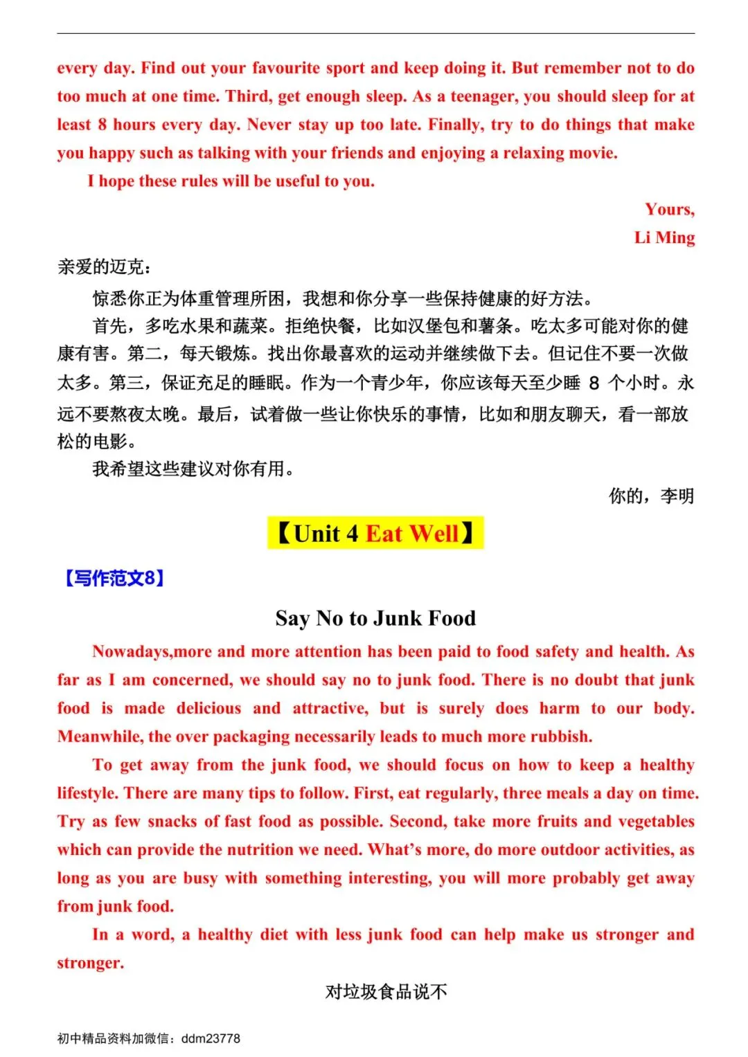 七年级下册英语单元主题范文 19 篇电子版可打印