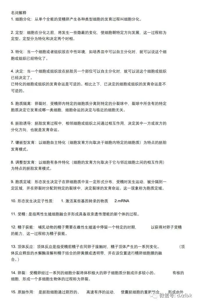 学长已经为你准备了超多超全的发育生物学复习资料。