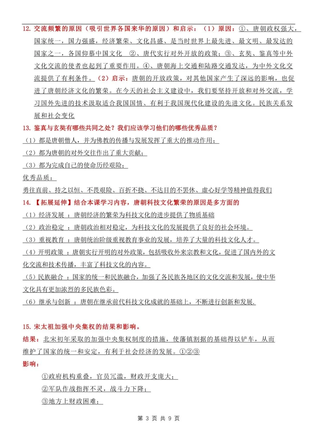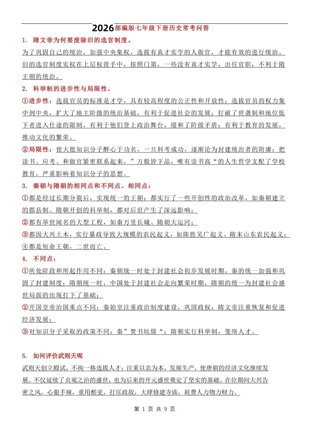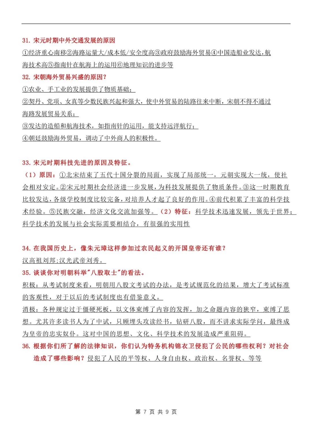 七年级下册历史常考问答知识点汇总电子版可打印