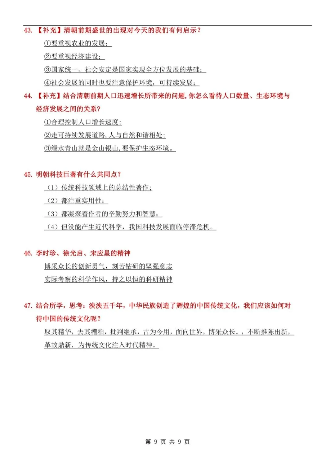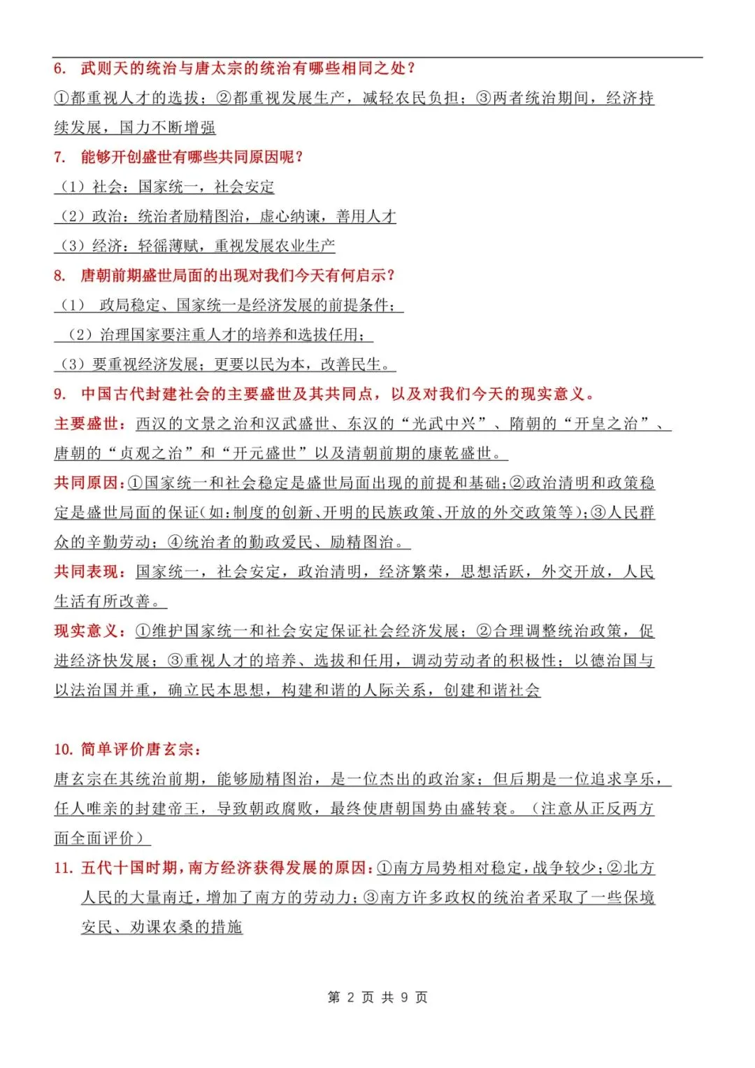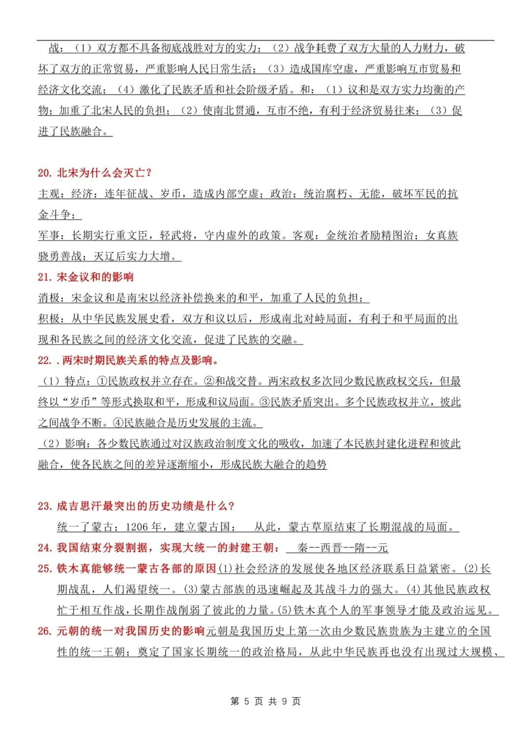 七年级下册历史常考问答知识点汇总电子版可打印