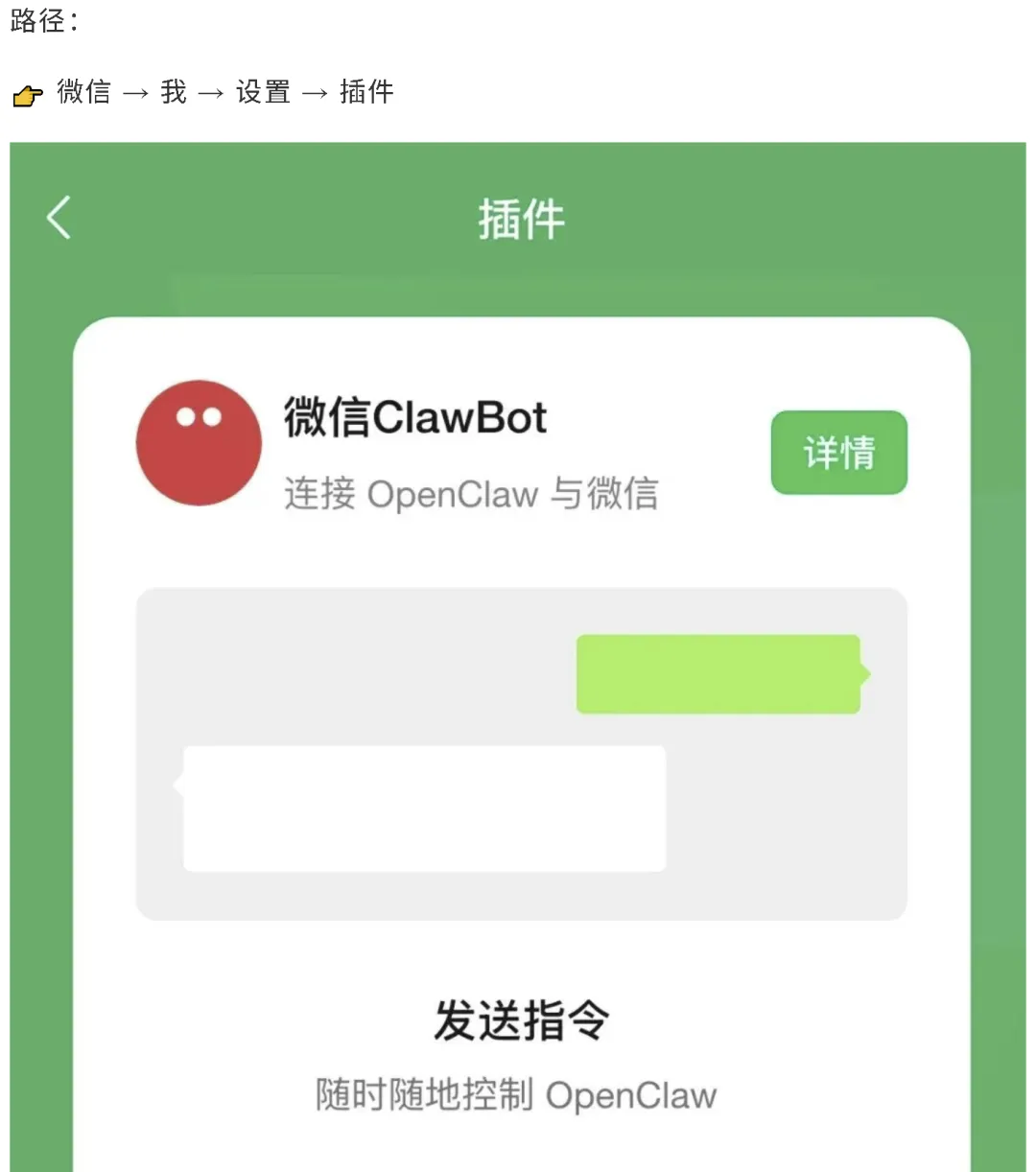第一步,先去微信设置里“插件”那栏看看,有没有“微信ClawBot”的入口。有就恭喜,你赶上首班车了!没有也别急,只是灰度没到你,完全不影响后续操作。