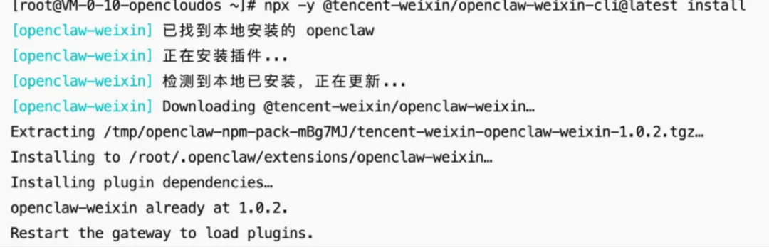 npx -y @tencent-weixin/openclaw-weixin-cli@latest install