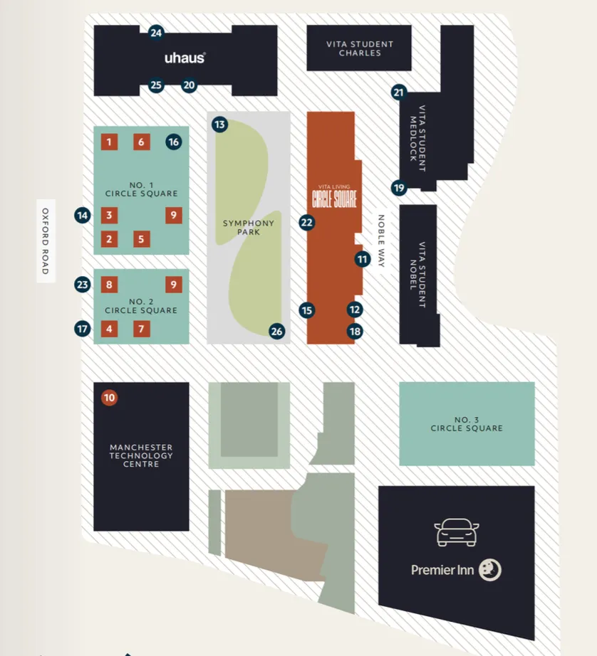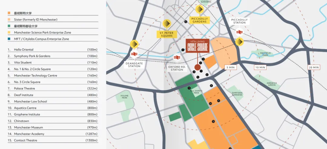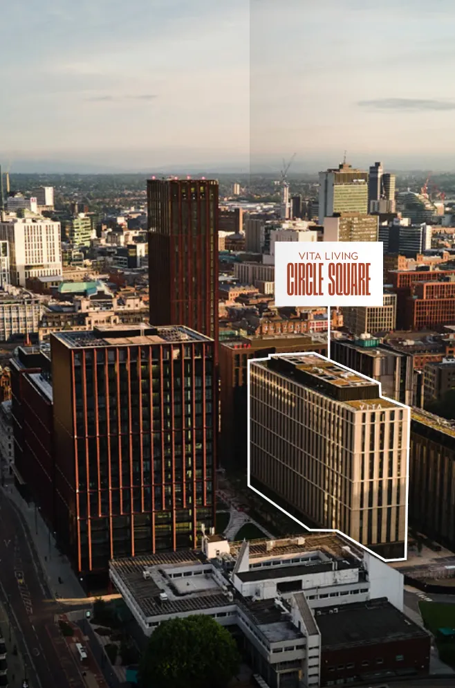 Vita Living Circle Square 位于曼彻斯特内环核心区位,这座活力四射的城市枢纽融汇学术园区、商务集群与生态绿洲,构筑多元共生的未来社区。
