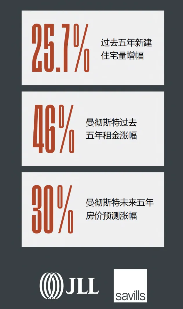 由于这种持续增长的需求,过去五年租金飙升近46%,为置业者提供难得的机会。这也这推动房价上涨,第一太平戴维斯(Savills)预计未来五年曼彻斯特房价将增长30%。