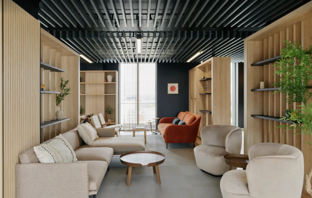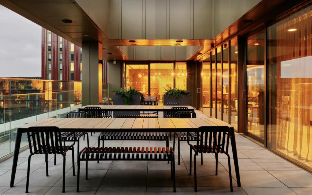 项目配套包括共享办公空间、屋顶花园、户外影院、15层顶楼露台、私⼈餐厅等。