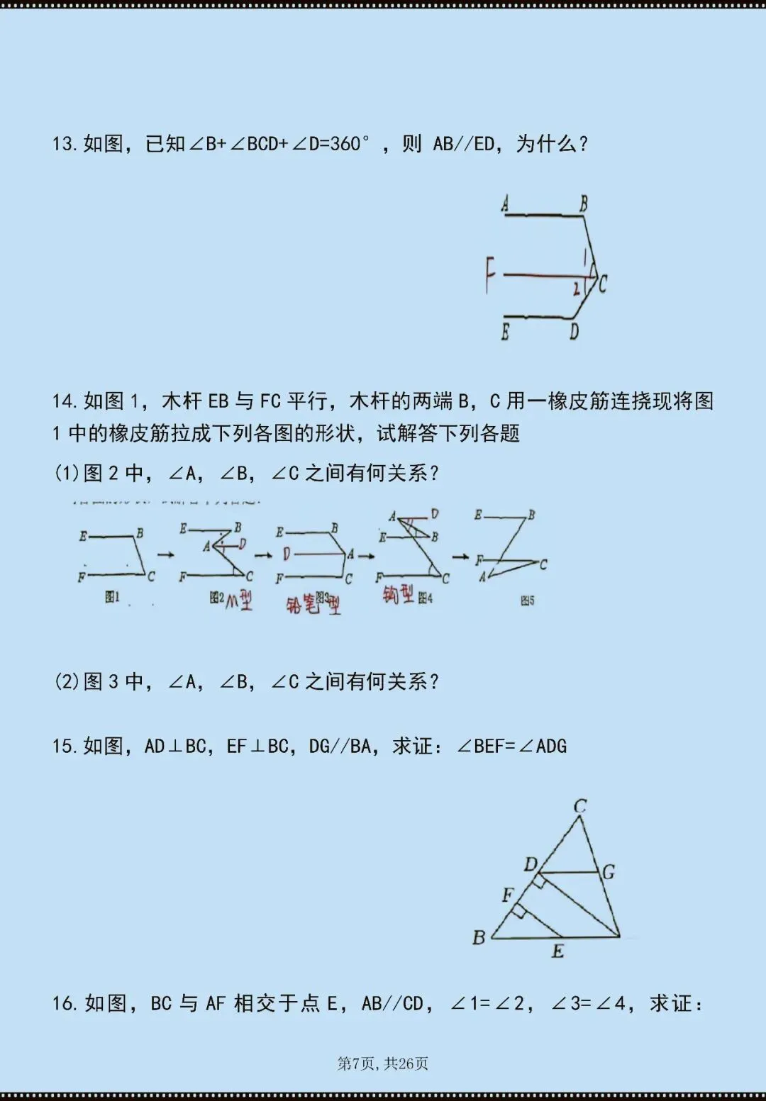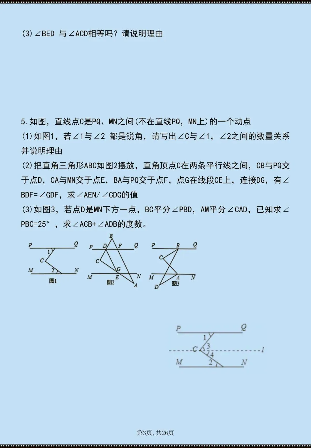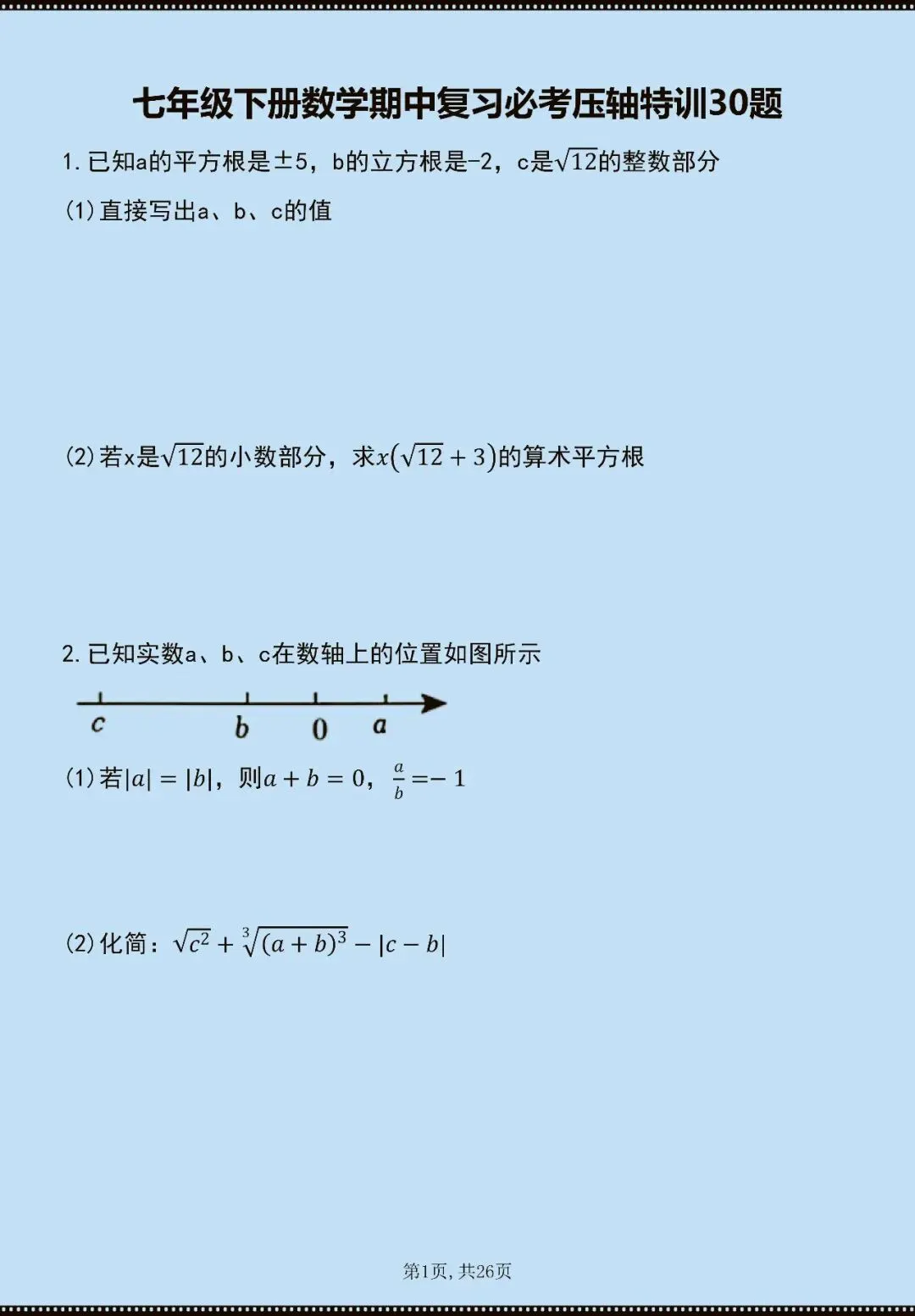 今天老师给大家整理了:七年级下册数学期中复习必考压轴特训(电子版可打印)