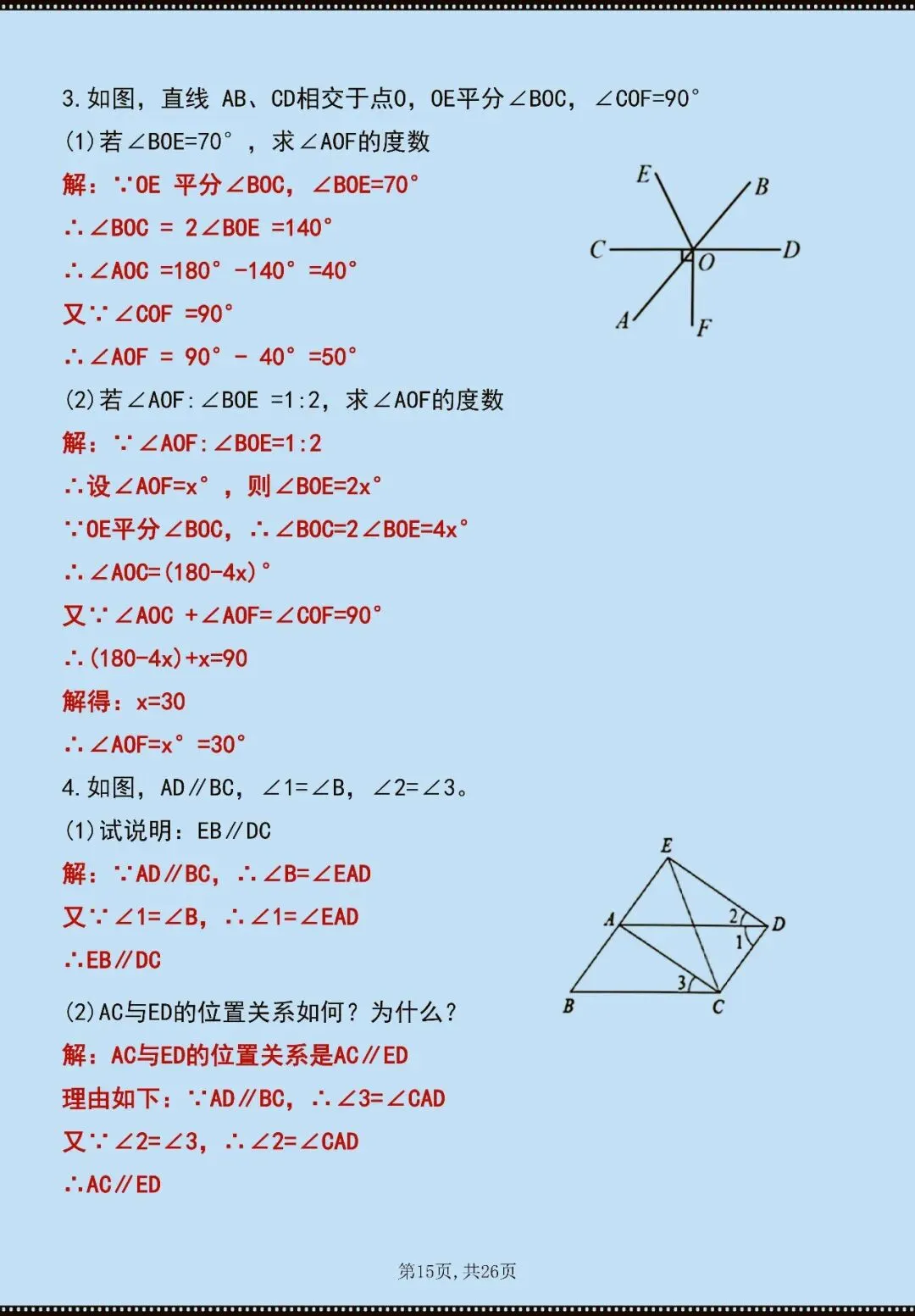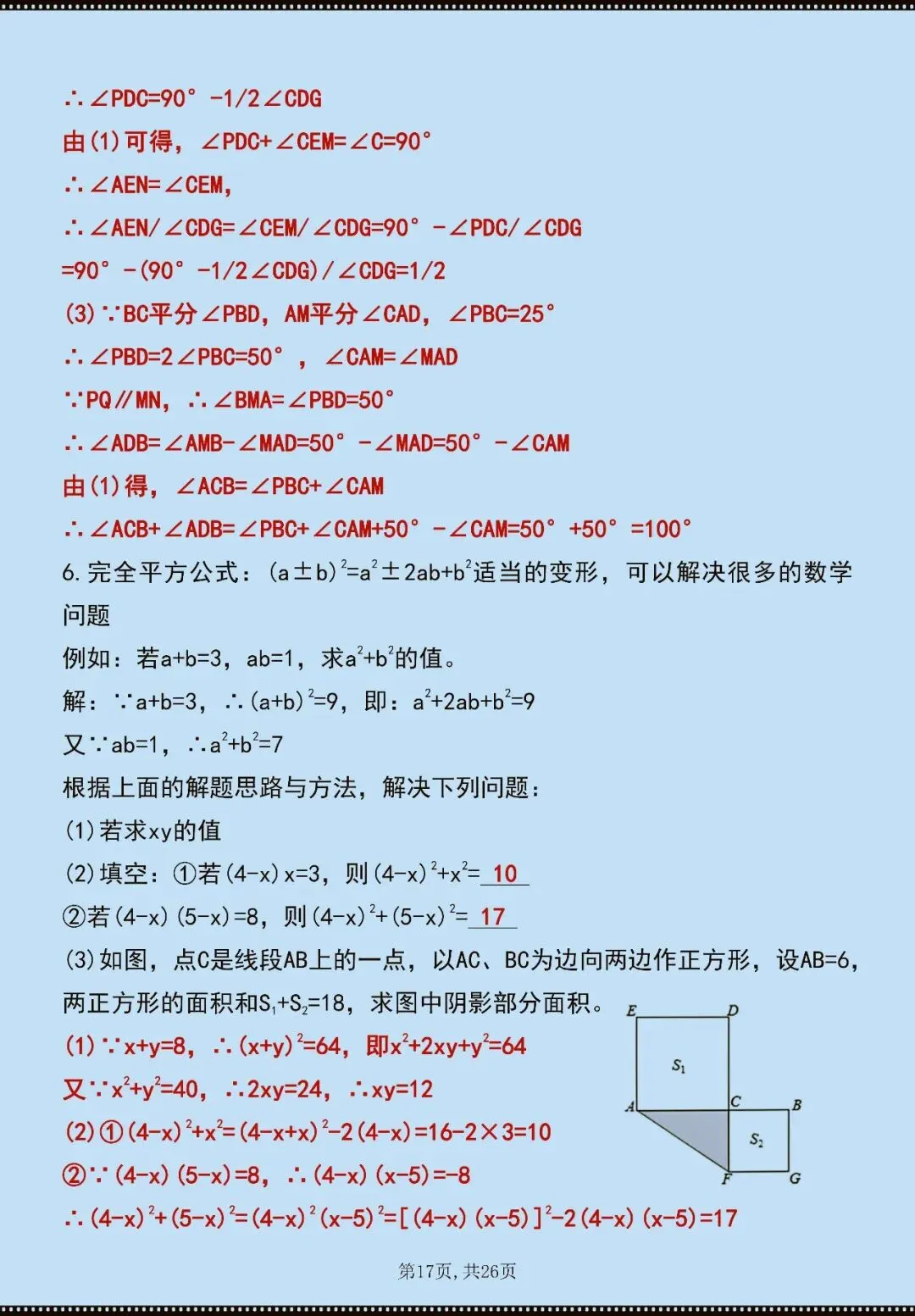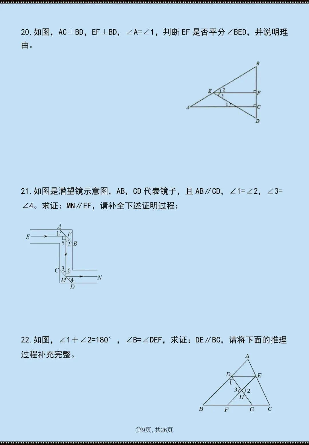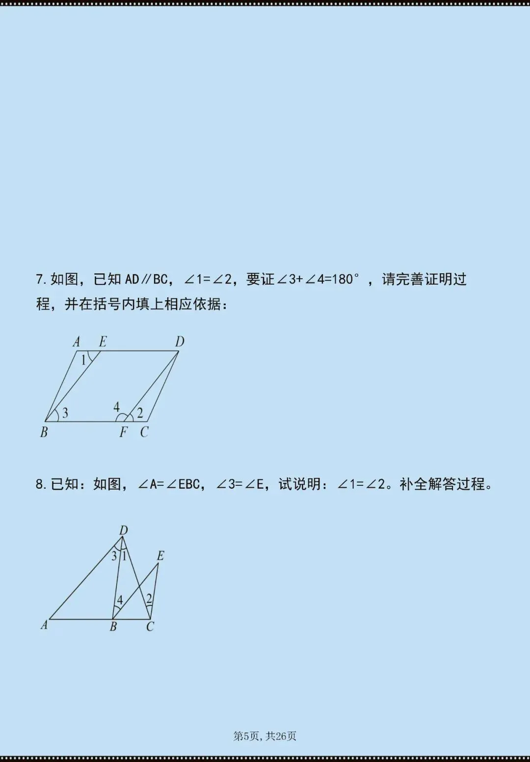 今天老师给大家整理了:七年级下册数学期中复习必考压轴特训(电子版可打印)