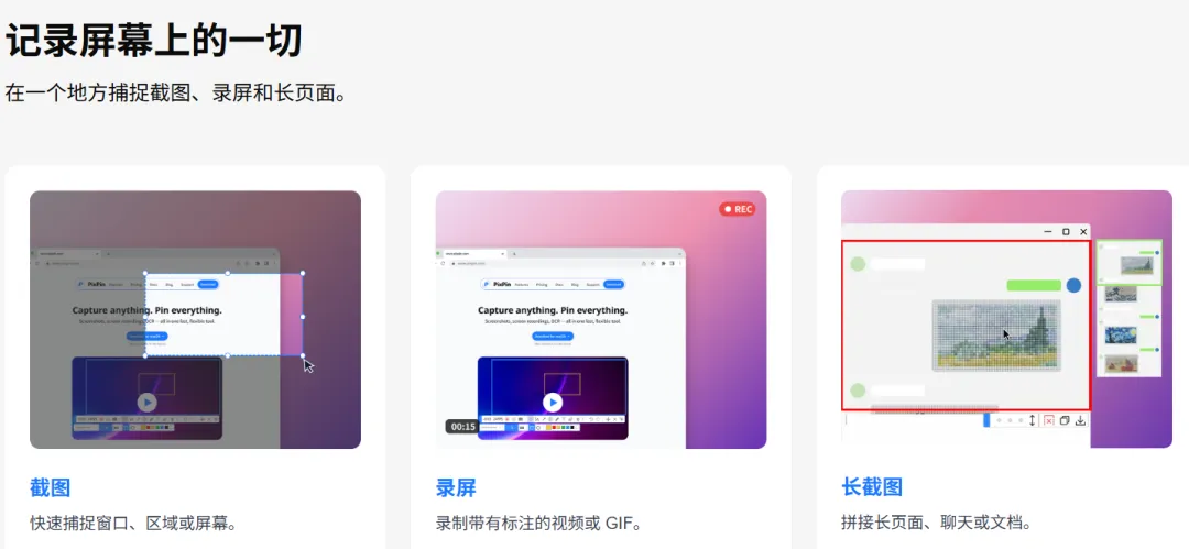 这个功能比pixpin更多点,支持长截图、OCR 识别,翻译能力,屏幕取色,gif录制还有录屏以及ai问答功能,主要是没有会员系统,所有功能免费不限量使用,也是我最常用的软件之一了,ocr识别率特别高,而且支持竖排日语识别。