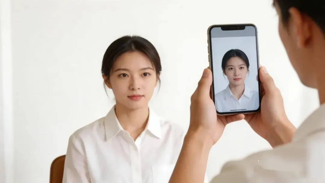 第一步,用手机拍一张大头照。不用穿正装,背后找一块白墙,光线足够亮,把人脸放在照片中间就可以。没有白墙也没关系,AI自动帮你去掉多余背景。