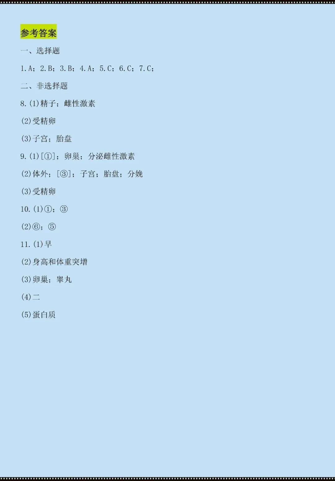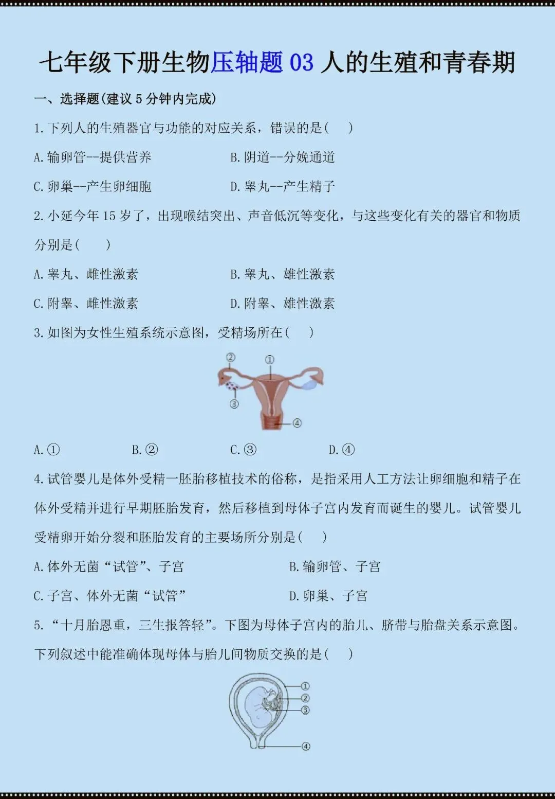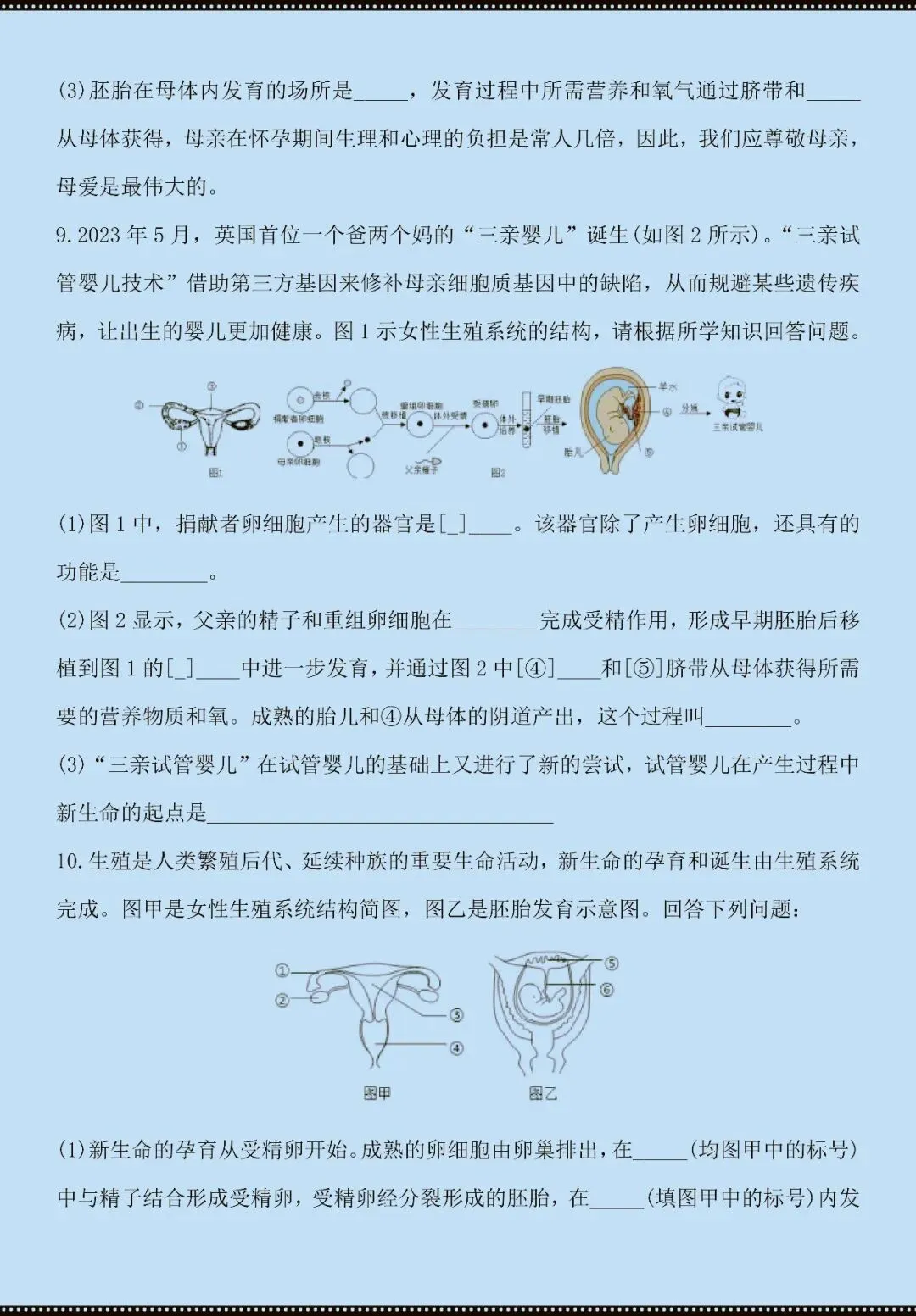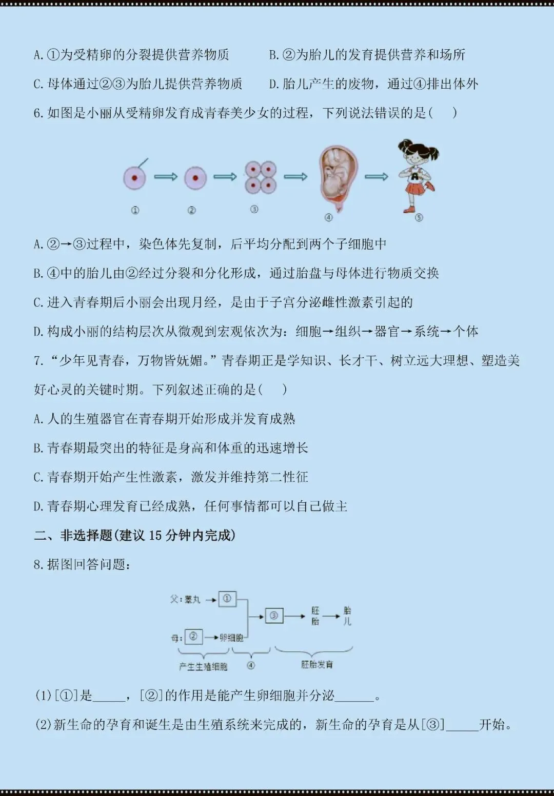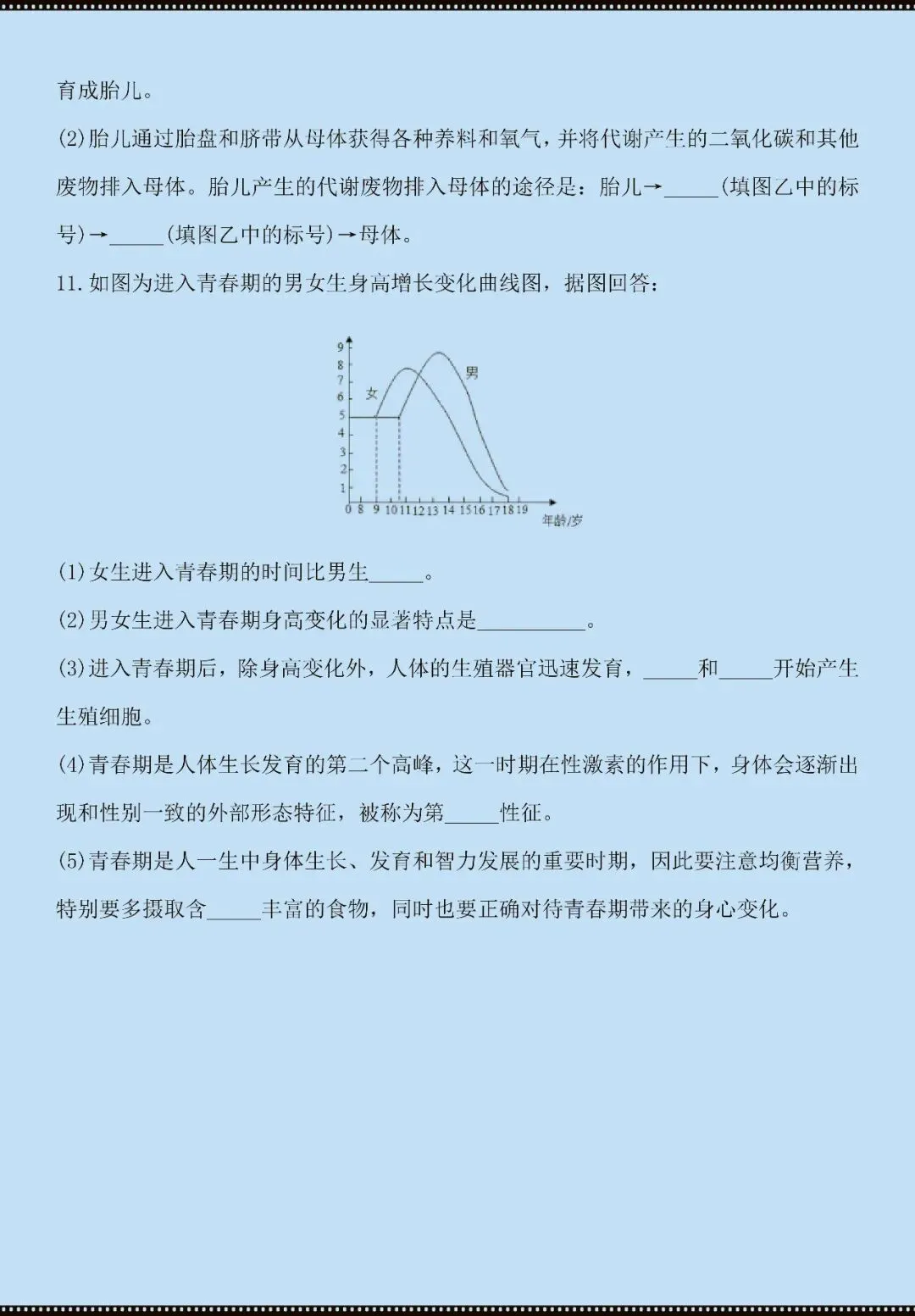 今天老师给大家整理了:七年级下册生物压轴题(电子版可打印)