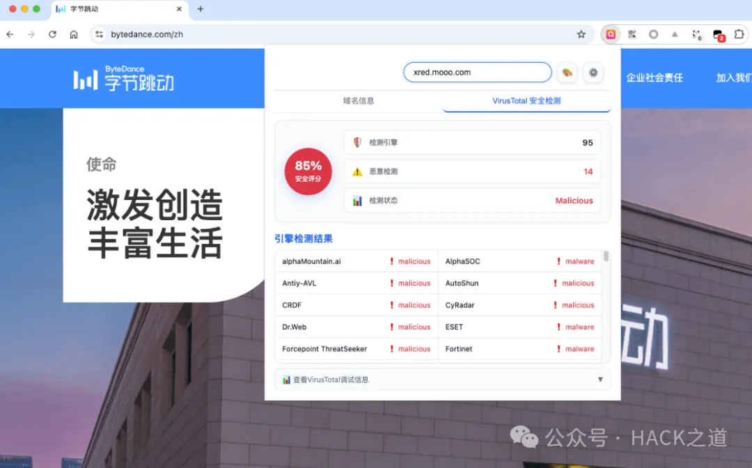 安全检测:显示VirusTotal安全评分和厂商检测结果