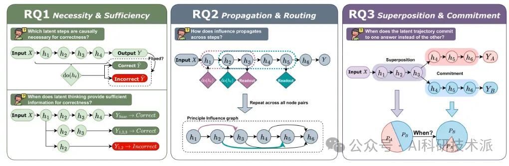 内容:该论文针对潜在思维链(Latent CoT)中间计算难以通过关联探针之外的方式评估的问题,提出将其视为表征空间中可操控的因果过程,通过将潜在步骤建模为结构因果模型(SCM)中的变量,并借助逐步干预分析其影响,以探究三个核心问题:哪些步骤对正确性具有因果必要性、答案何时可早期判定;影响如何跨步骤传播及该结构与显式 CoT 的差异;中间轨迹是否保留竞争答案模式及输出层面与表征层面的承诺差异。研究在数学和通用推理任务上对 Coconut 和 CODI 两种代表性范式展开实验,发现潜在步骤预算更偏向具有非局部路由的阶段化功能而非同质化的额外深度,且早期输出偏倚与后期表征承诺之间存在持续差距。该研究构建了首个因果化、步骤解析的潜在 CoT 评估视角,提出算子和读出条件化的影响分析方法,其结果为模式条件化和稳定性感知分析及相关训练 / 解码目标提供了支撑,也为改进潜在推理系统指明方向。