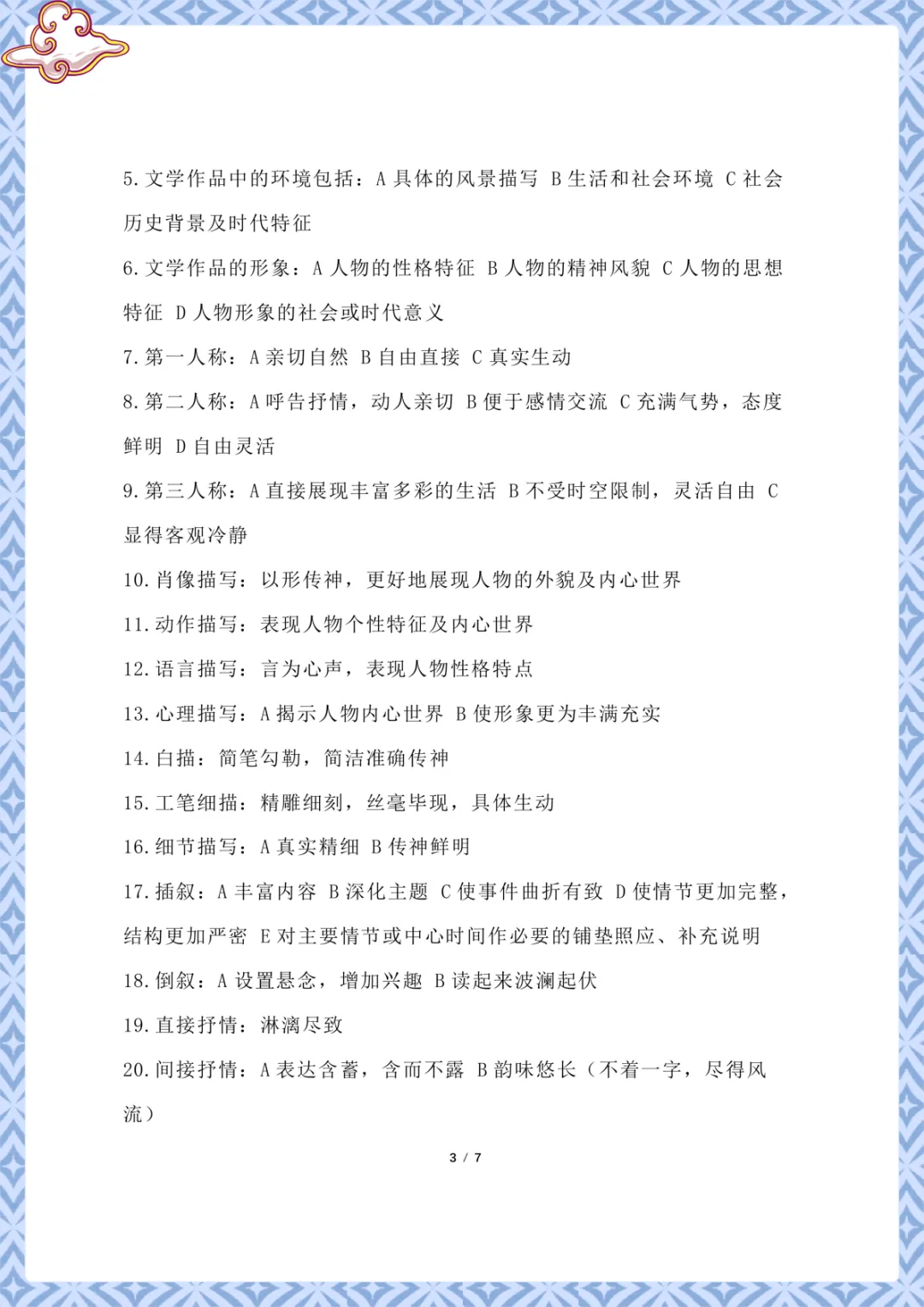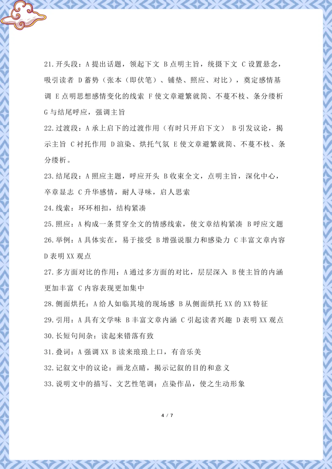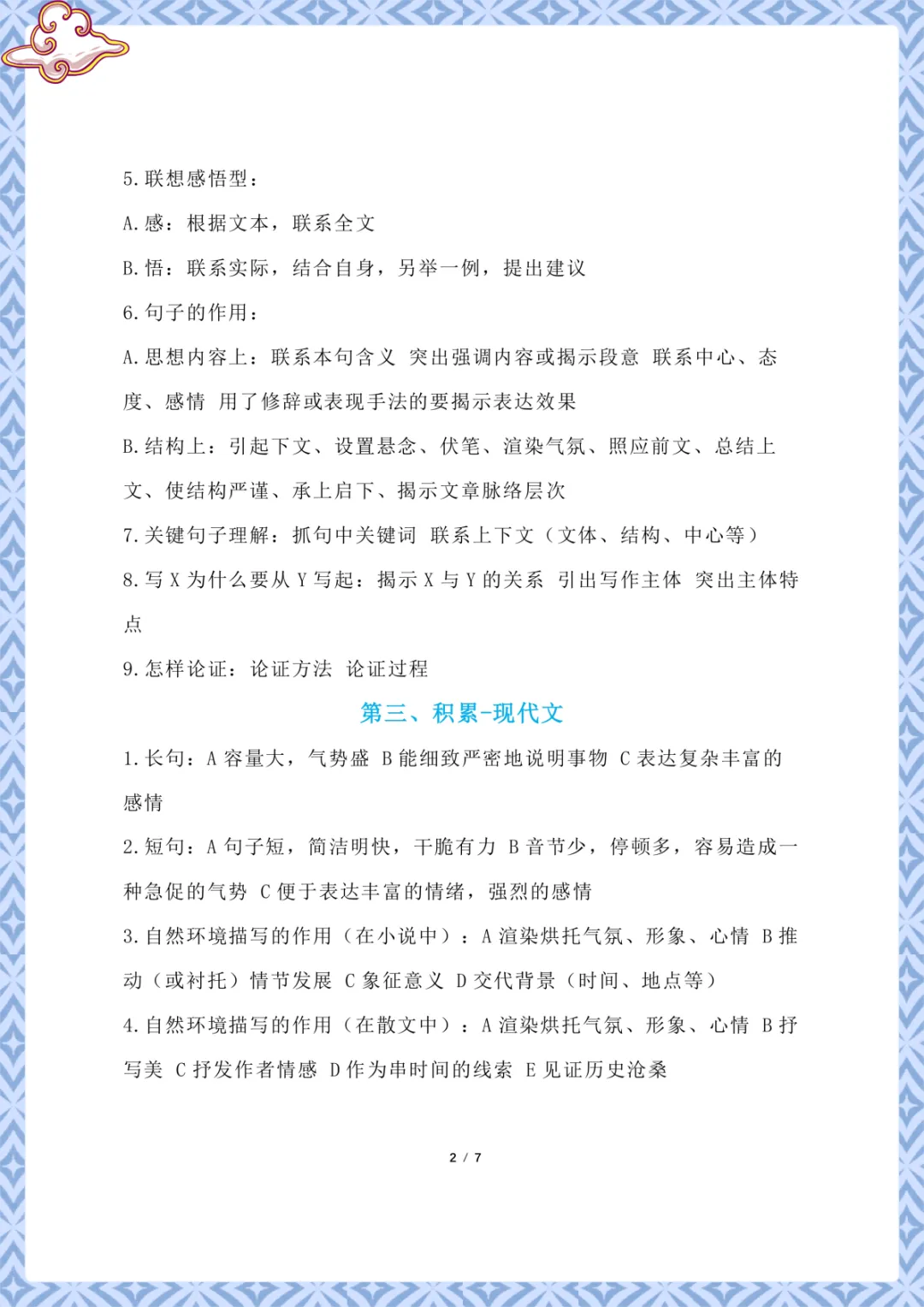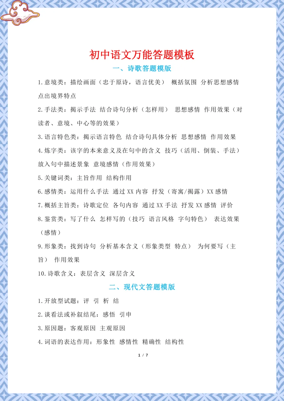 初中语文万能答题模板 电子版可下载打印
