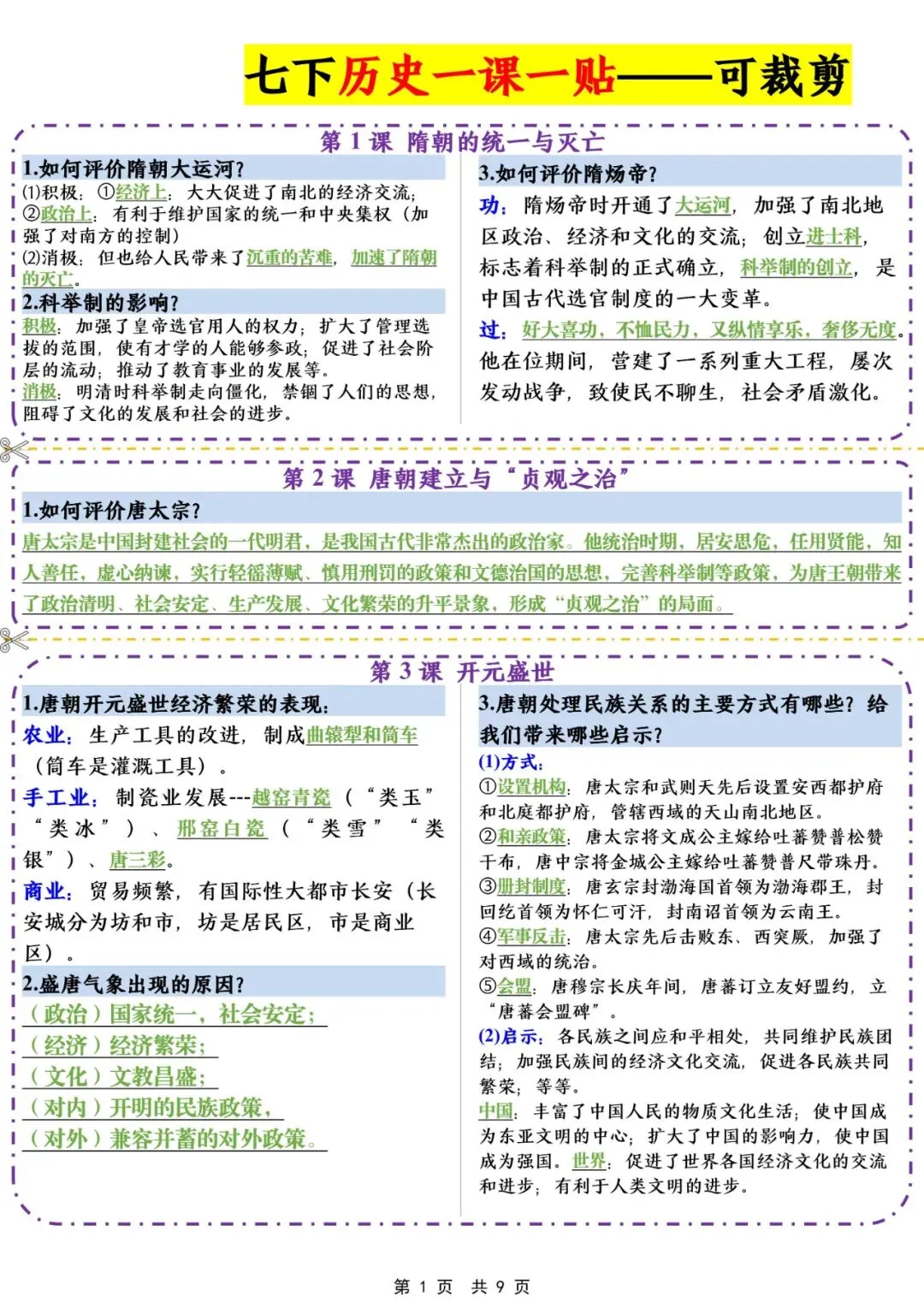 今日老师为大家整理了:七年级下册历史课课贴知识点汇总电子版可打印