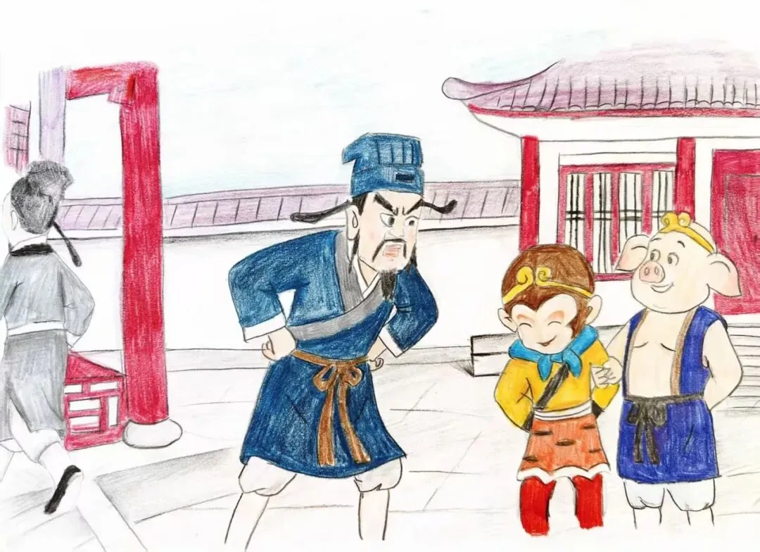 悟空低头假意认错,可医官刚走,他立刻又拉着八戒继续违规玩耍。