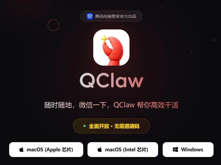 快来养你的微信“小龙虾”,腾讯全新推出的AI智能助手Qclaw正式开启,无需邀请码