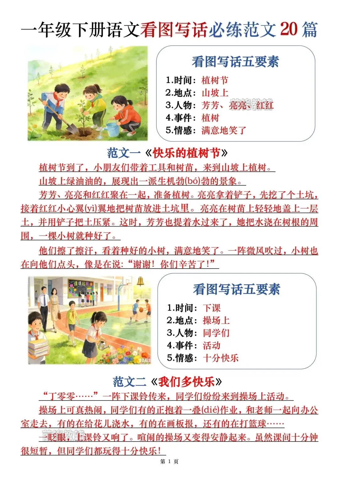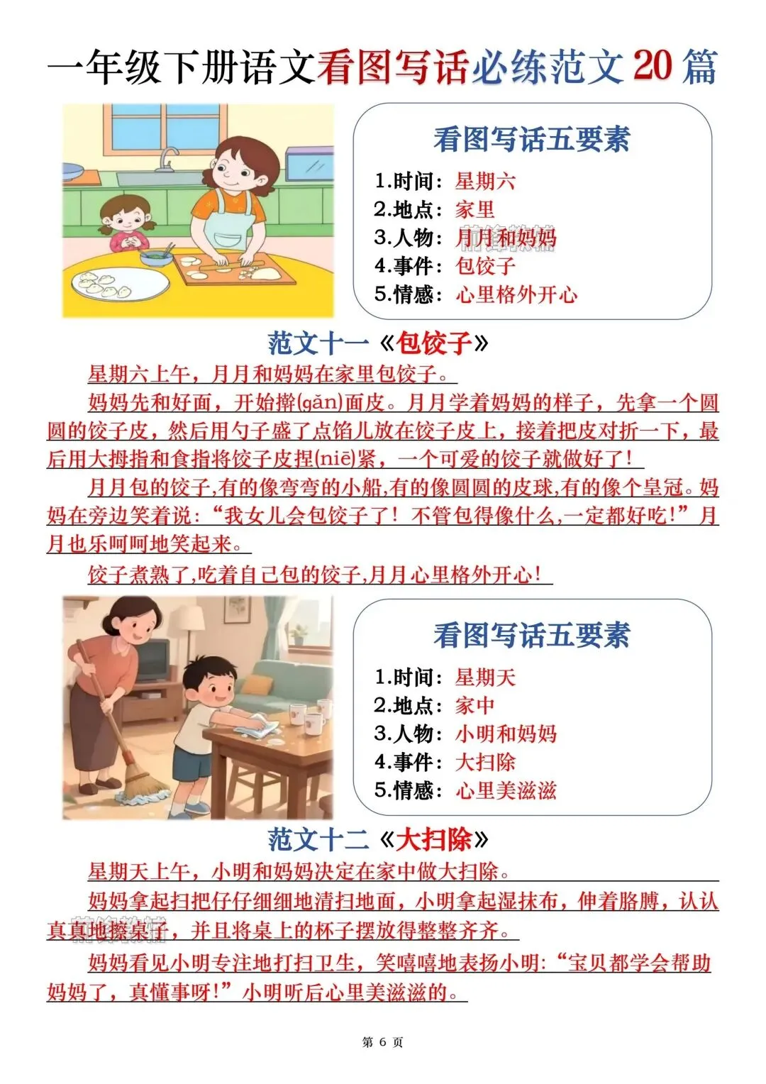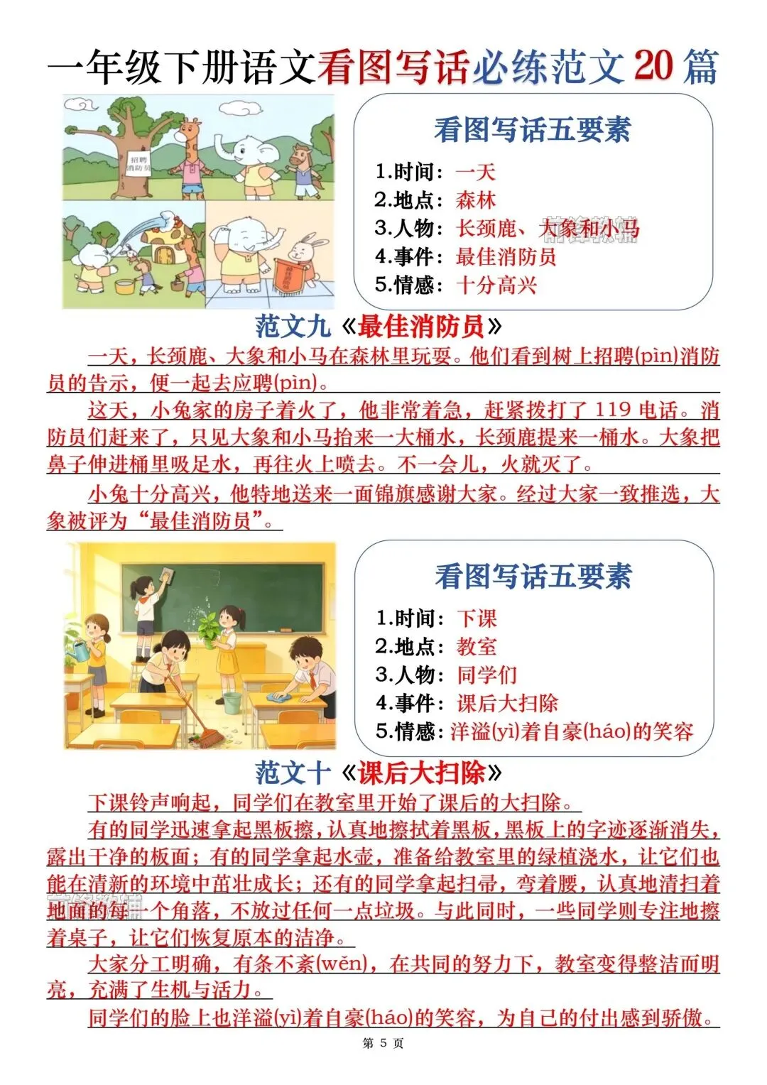 别愁了!这份一年级下册看图写话必练范文直接封神!从五要素拆解到满分范文,娃一看就会,提笔就写!