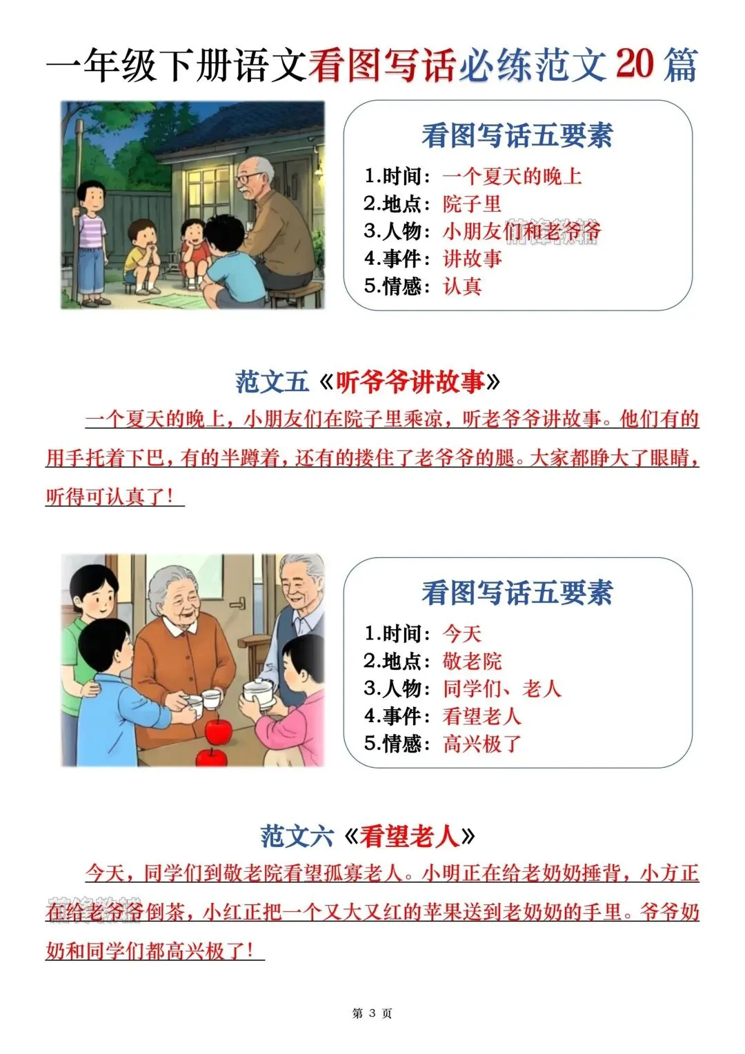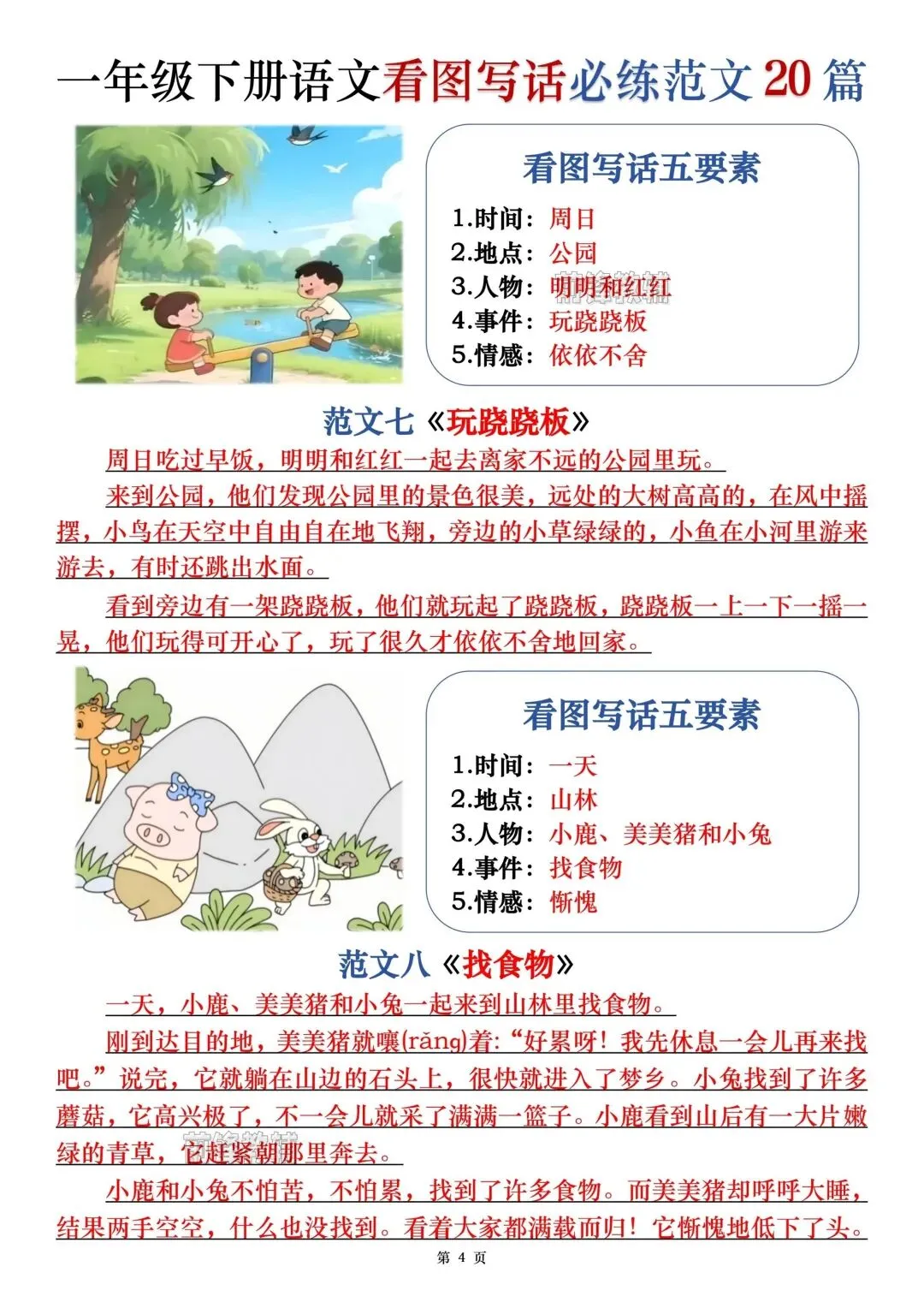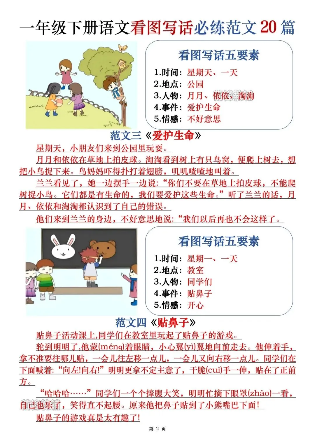 别愁了!这份一年级下册看图写话必练范文直接封神!从五要素拆解到满分范文,娃一看就会,提笔就写!