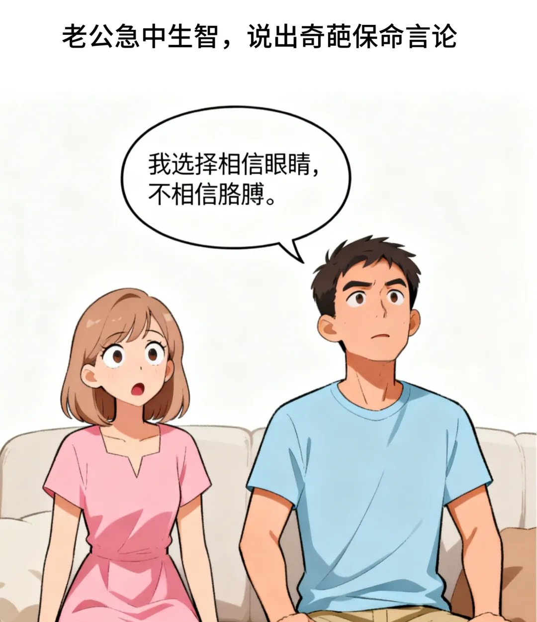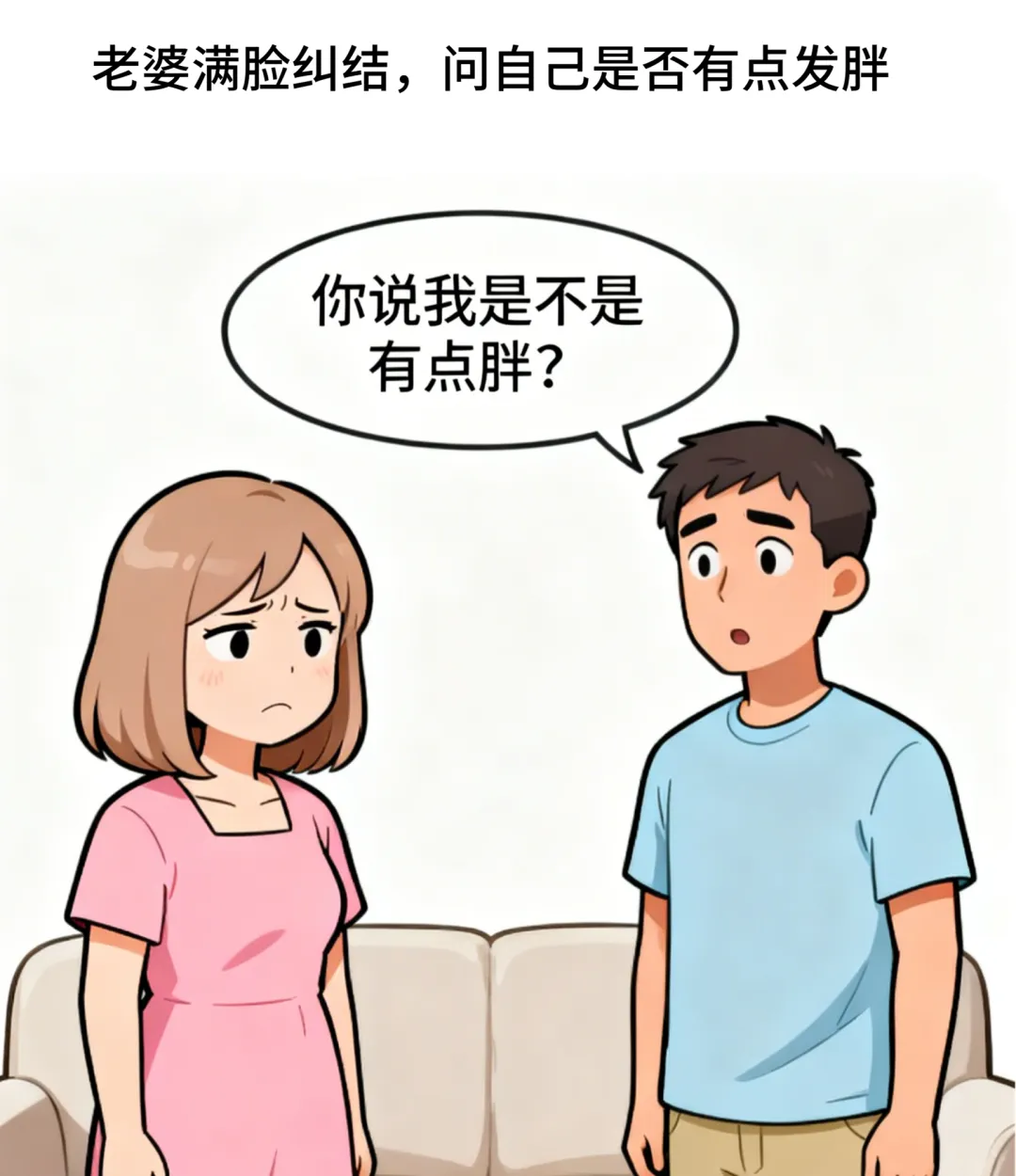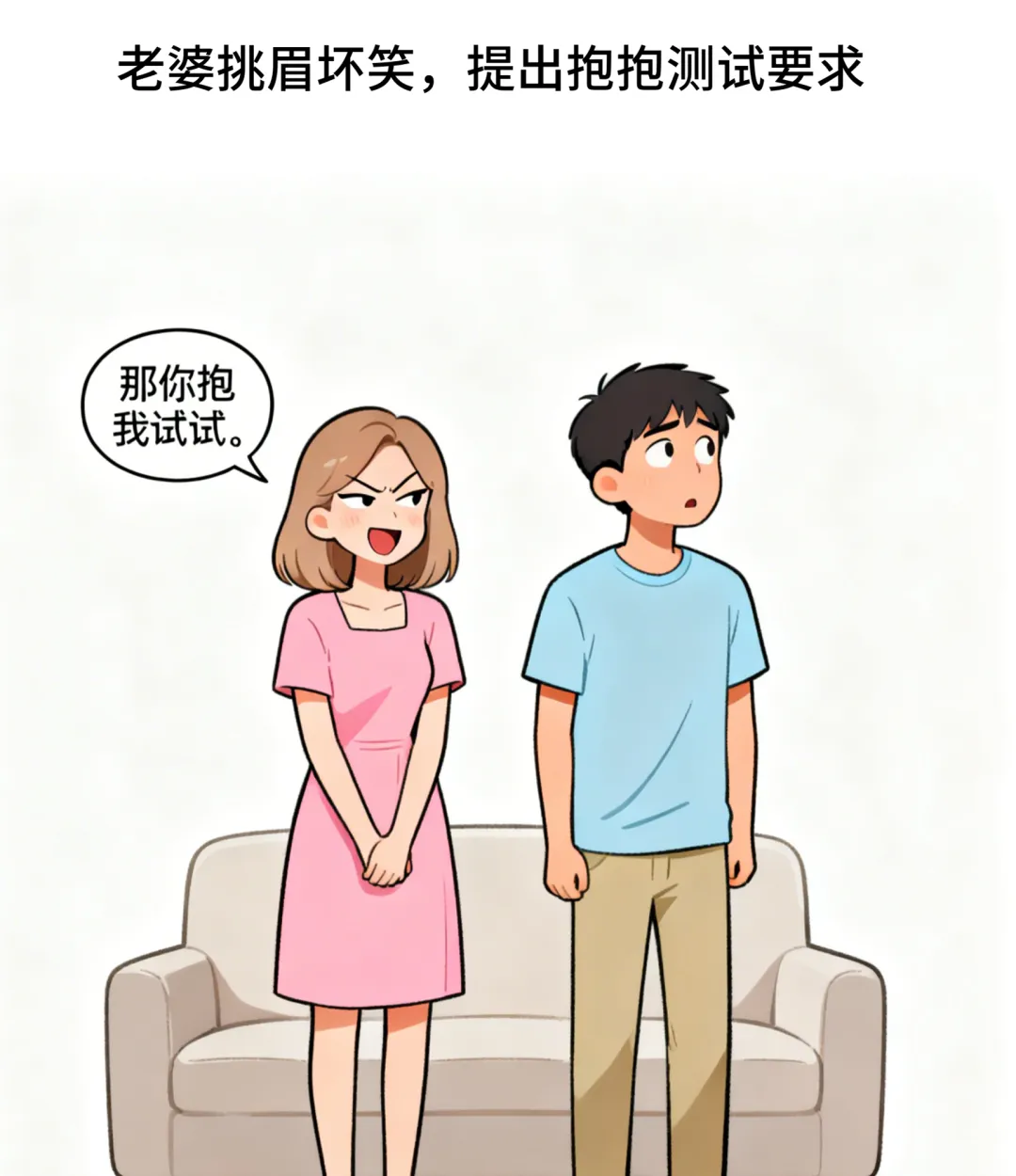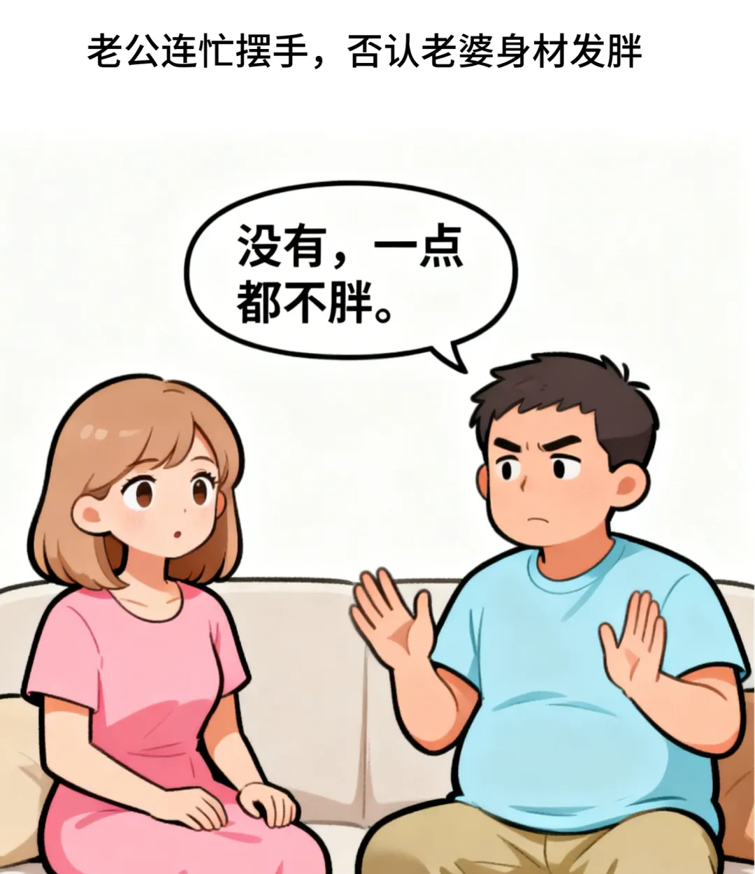 趣味漫画:老婆问:你说我是不是有点胖?老公答:没有,一点都不胖.老婆说:那你抱我试试.老公说:我选择相信眼睛,不相信胳膊.