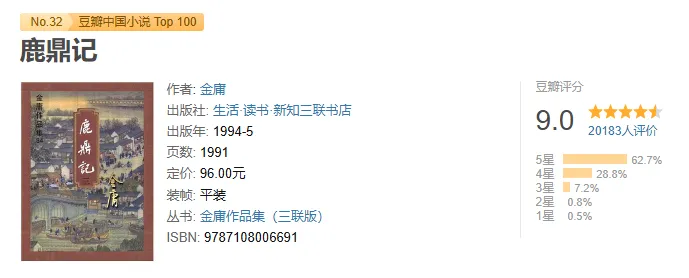 《鹿鼎记》pdf+epub+mobi+azw3电子书下载 《鹿鼎记》电子版下载链接,点击文章末尾左下方“阅读原文”自动跳转。 代找电子书加微:15710080257,加微备注领取电子资料可免费领取20T电子资料合集(古籍/电子书/小说/游戏/软件工具/电影/电视剧/动漫/PPT素材/教辅资料/烹饪教程/各类学习文档等电子资源)。 特别提醒:电子资料仅供个人学习使用,链接随时失效,请及时保存到个人网盘!