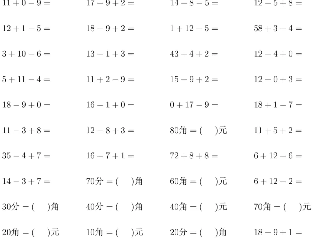 小学一年级口算10000题|免费下载可打印
