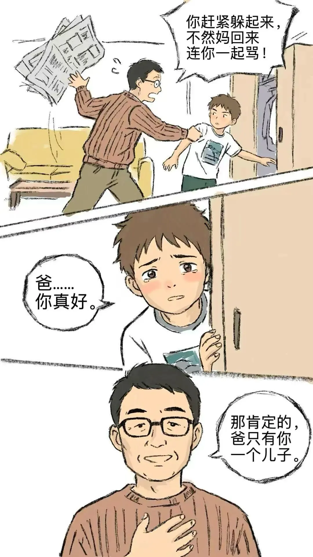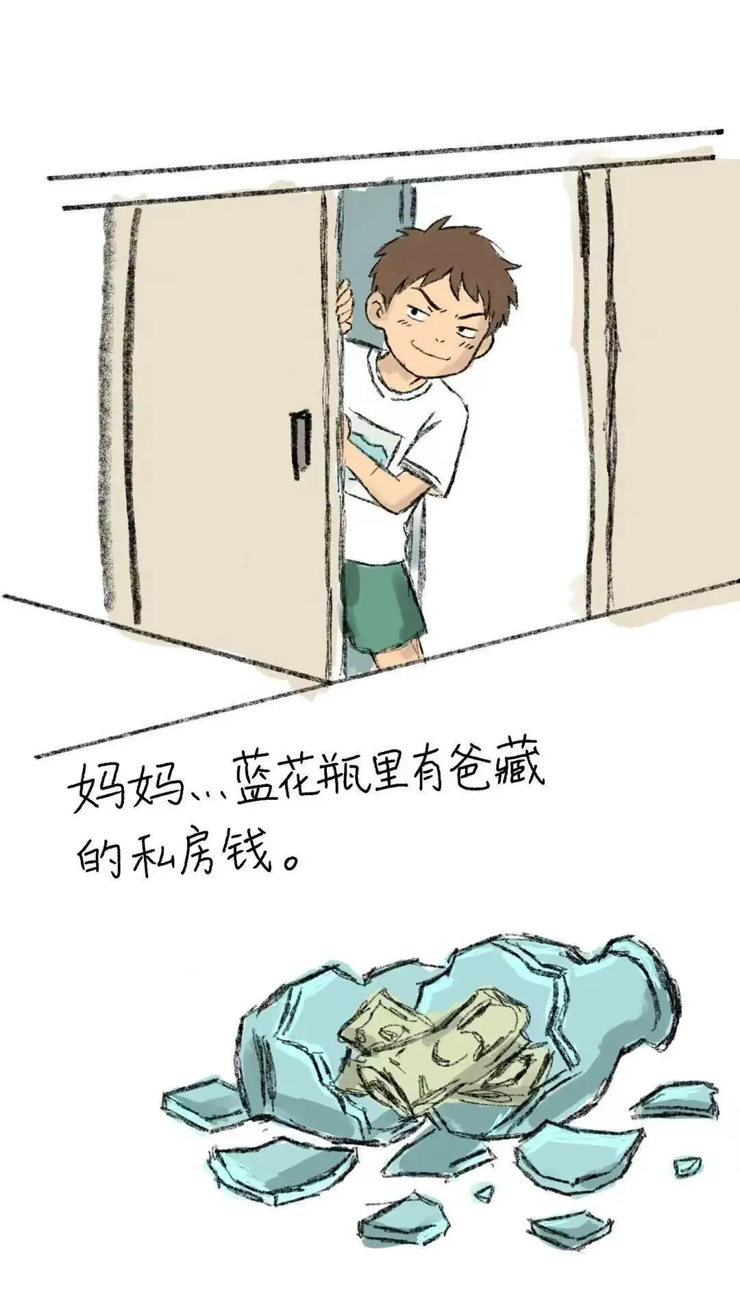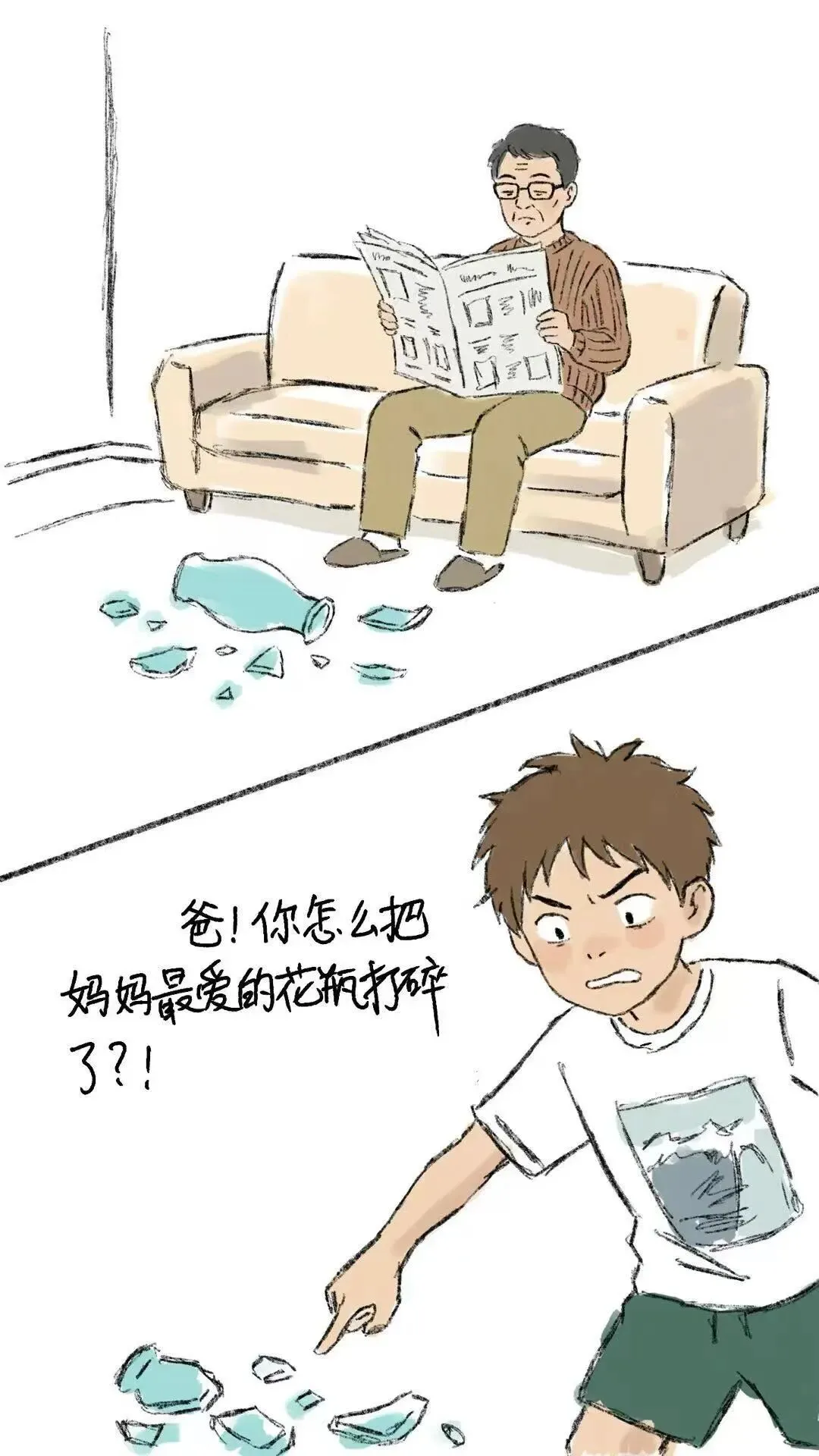 搞笑漫画:儿子:爸!你打碎妈的花瓶了.爸:快躲!妈回来连你一起骂!妈质问,爸逼儿子认错,儿子反曝爸私房钱.
