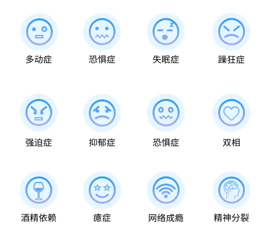诊疗范围:临床心理科可诊治各类精神疾病、睡眠障碍及心身疾病,包括抑郁症、焦虑症、强迫症、精神分裂症、睡眠障碍、产后抑郁症、儿童青少年心理行为问题、网络成瘾、职场压力缓解、婚姻情感调和、亲子关系问题等。