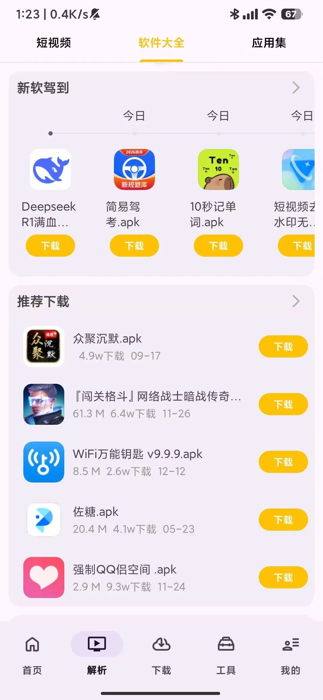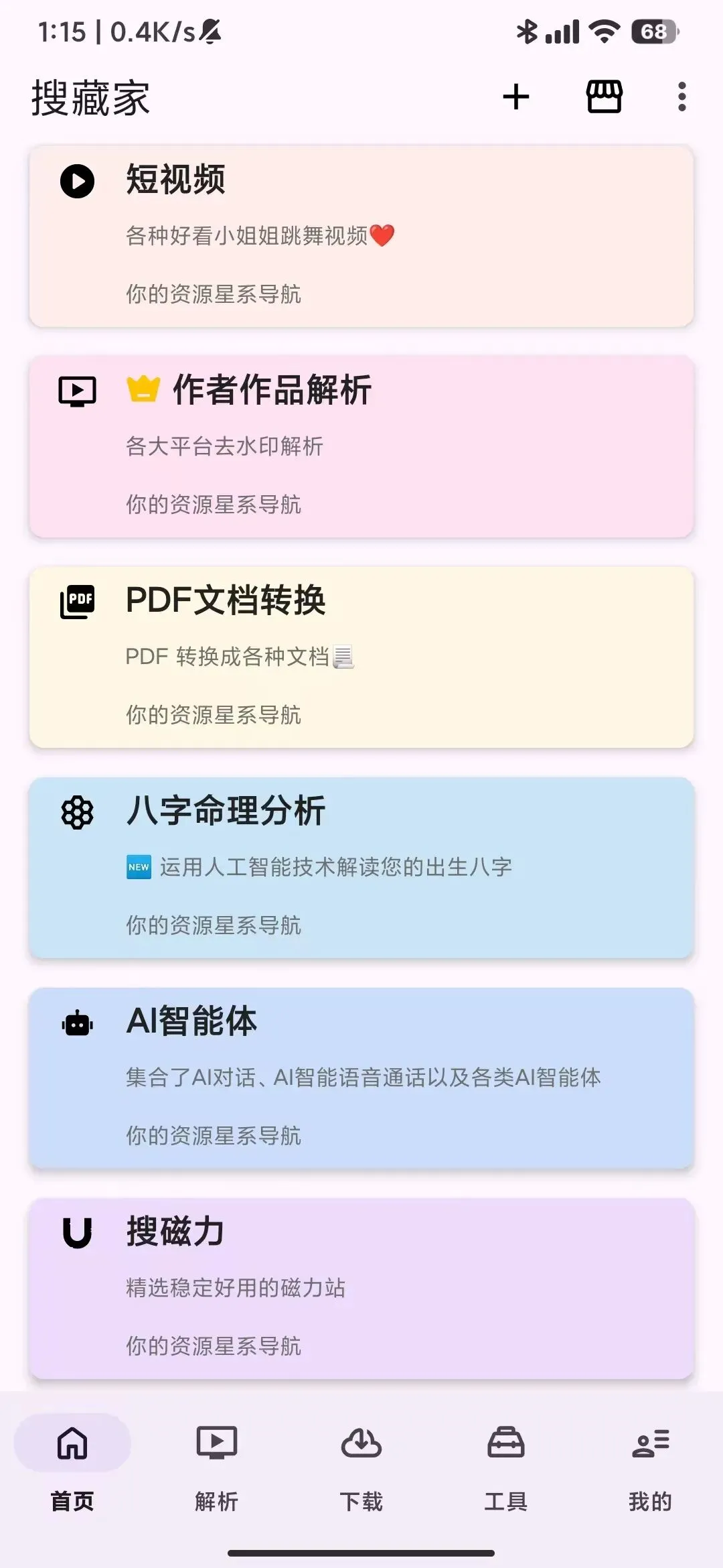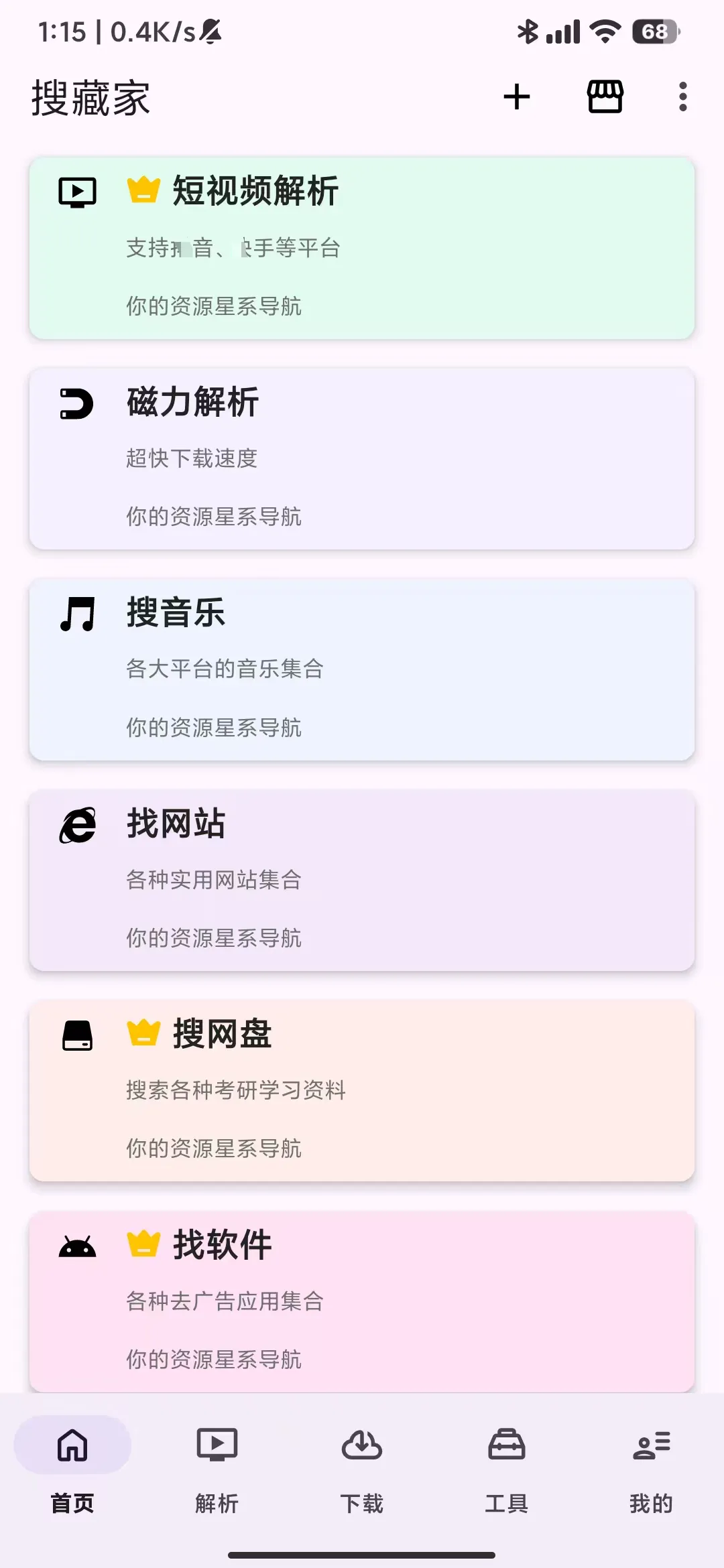 还有非常丰富的软件资源,汇集了多个软件源,各种稀有软件、浮力软件都可以直接下载到手机,各种网盘的资料也可以直接下载,非常好用!