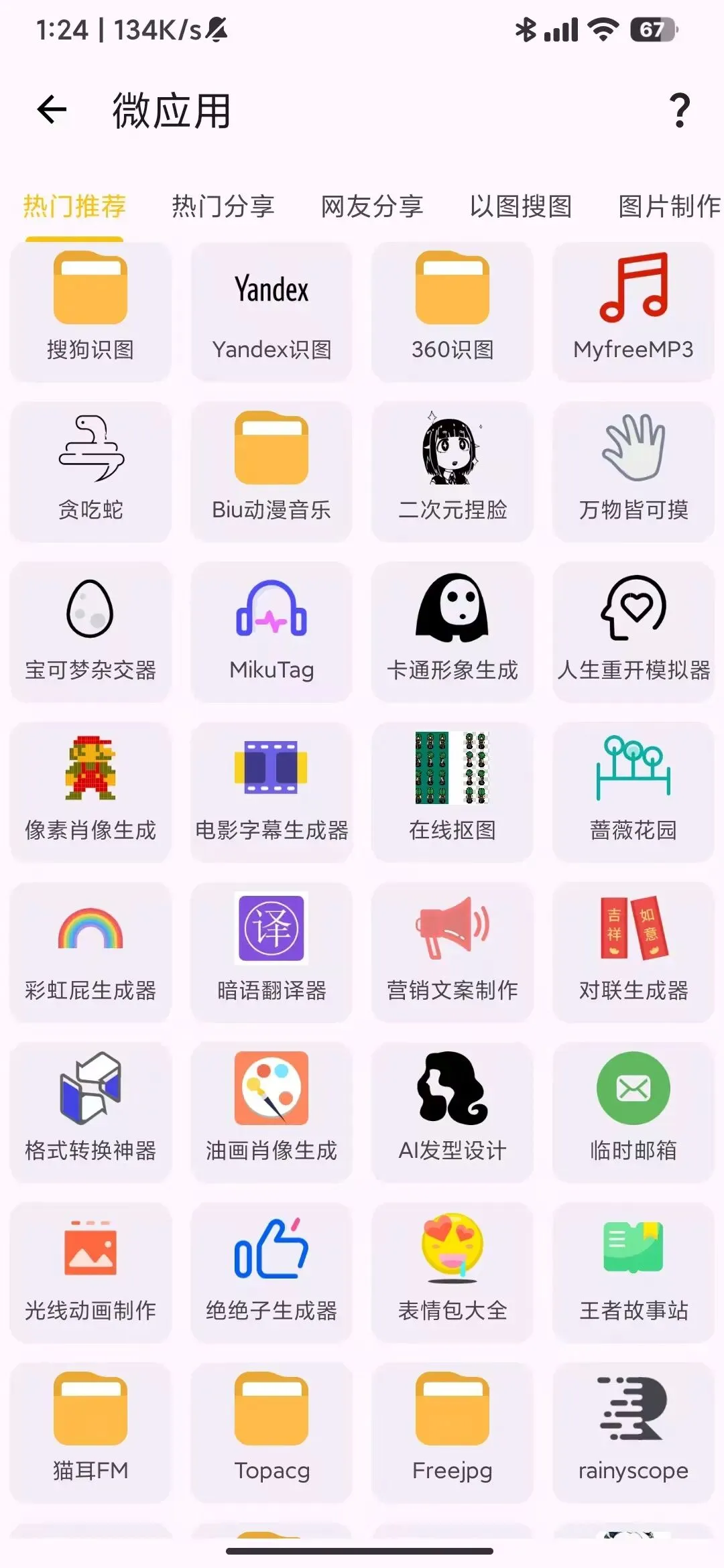 另外还有数百种黑科技微应用,比如识图、设计、学习工具、游戏娱乐、各种生成器、网站等想到的想不到的都给你提供出来了,所有的功能均是免费使用!