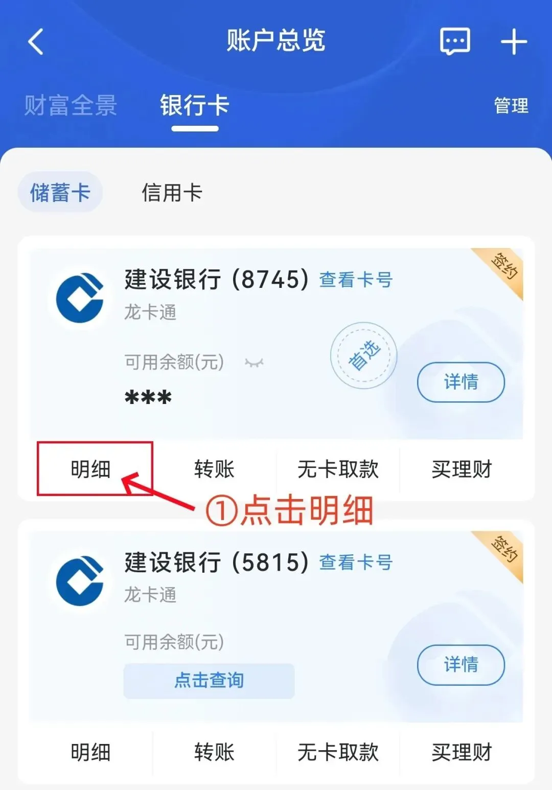 二、点击账户“明细”