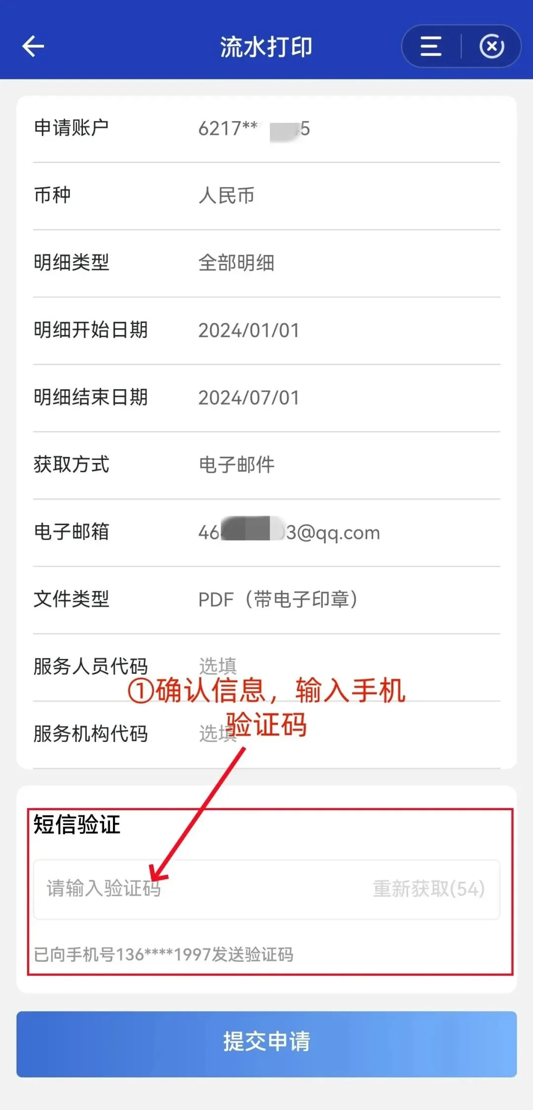 五、确认信息,输入验证码