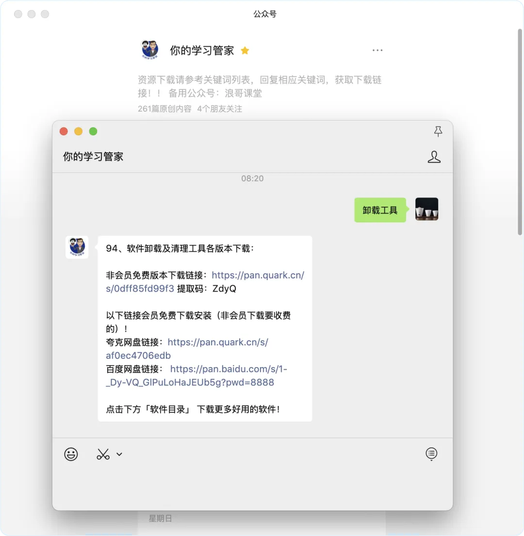 1、请在公众号「你的学习管家」后台回复:卸载工具 获取下载链接!