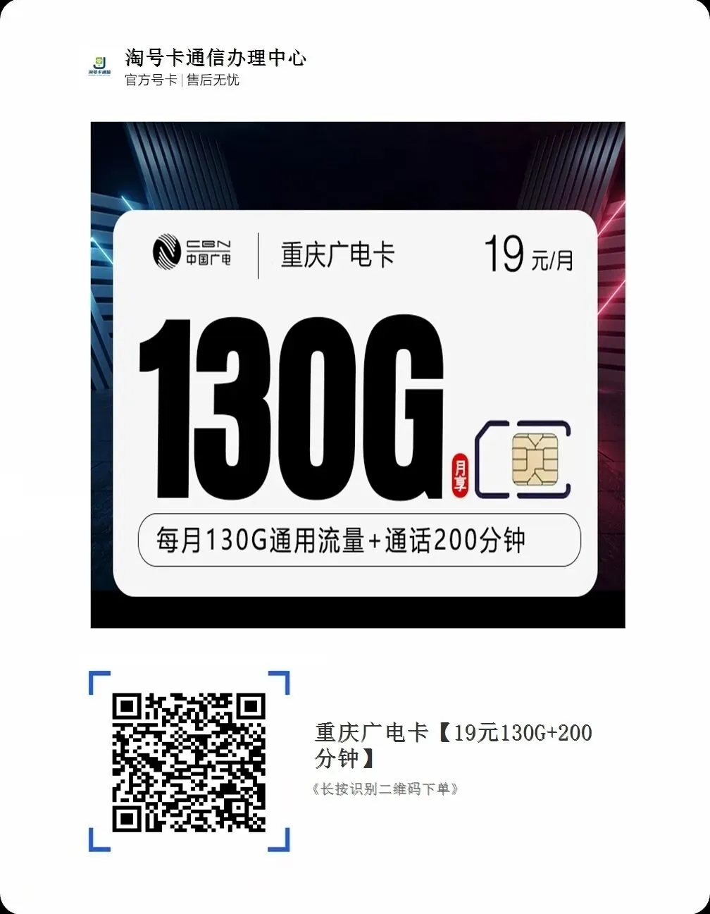 总结:重庆广电卡19元130G+200分钟套餐,主打高性价比大流量与实惠通话,适合学生党、上班族及轻度高频上网人群!