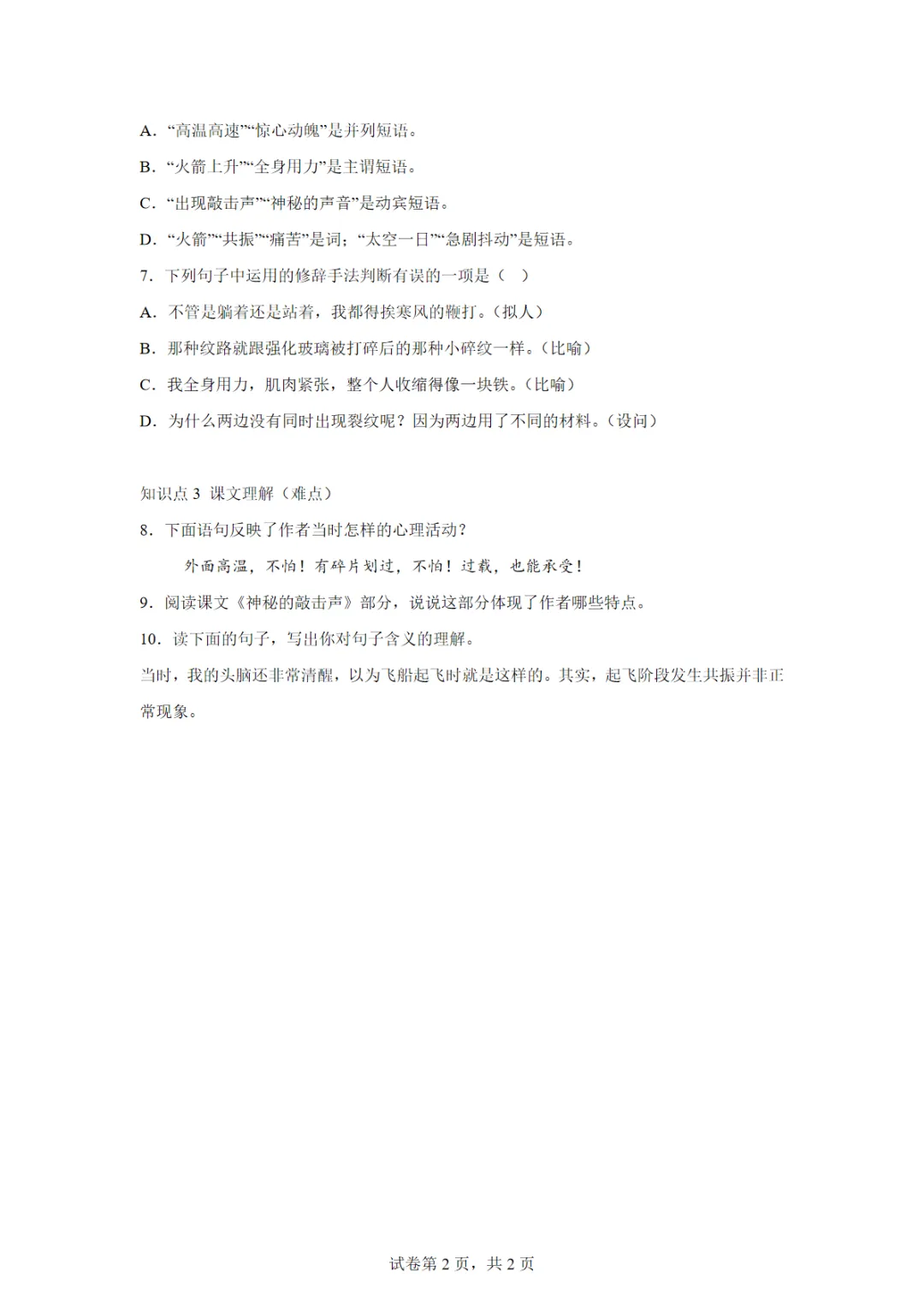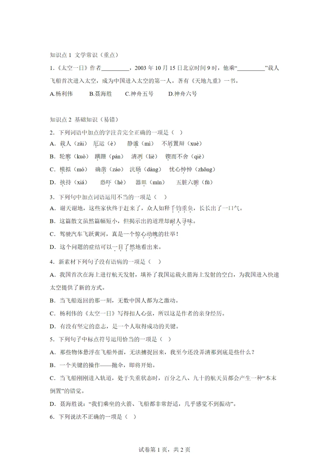 [免费下载],语文第22课 太空一日(第一课时) 课后作业(巩固),PDF电子版,可打印