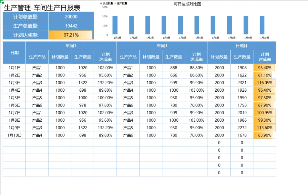 45款新版《生产日报表模板》excel电子版,工厂每日生产明细|生产统计|生产进度|生产效率日报表