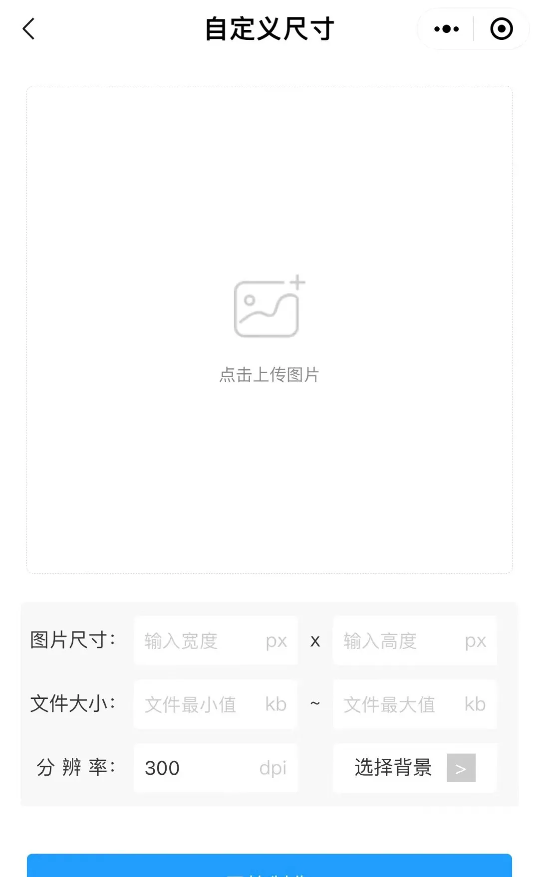 点击主页面“自定义尺寸”去制作,上传照片,输入自己想要的照片尺寸、文件大小、分辨率,例如: