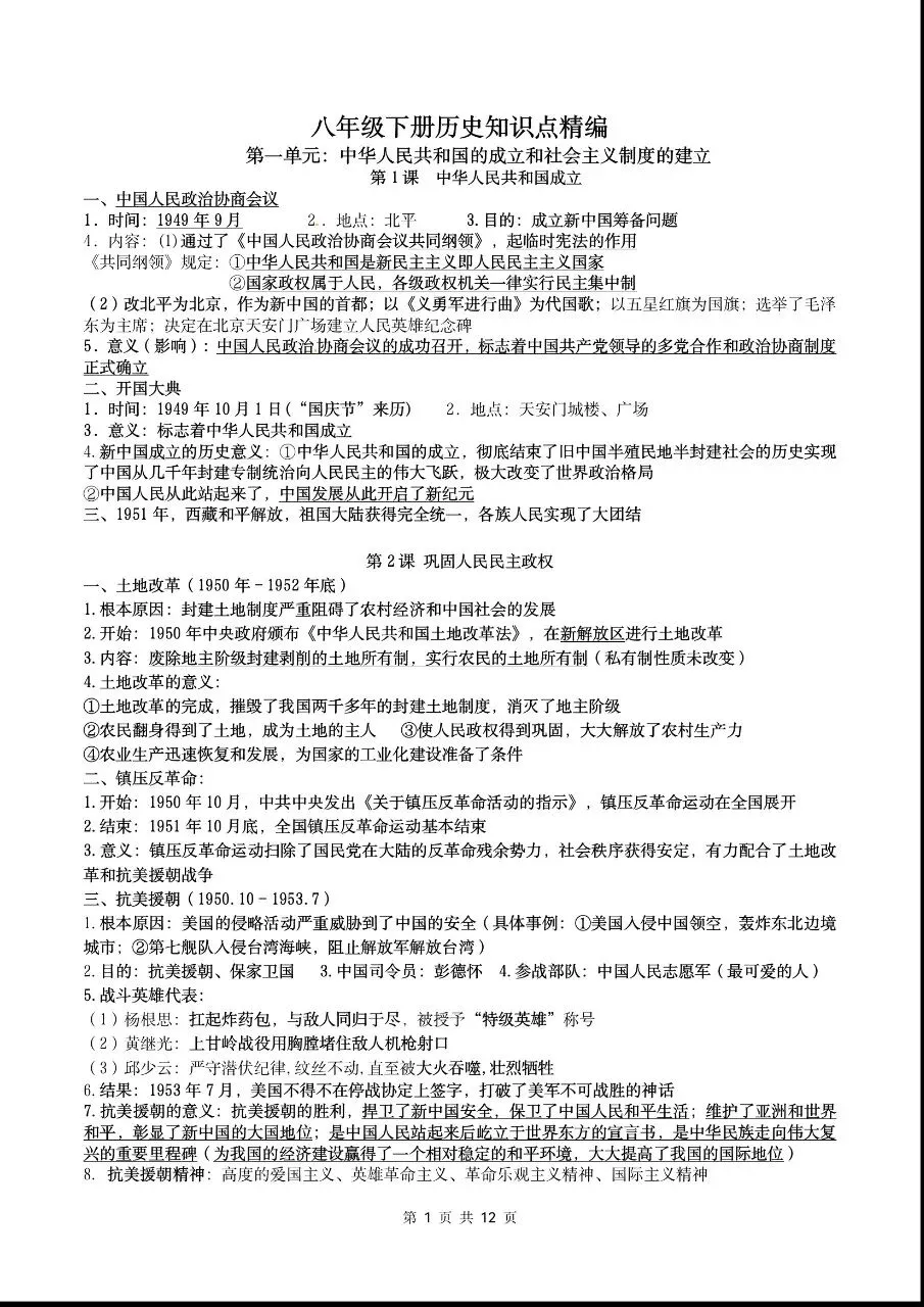 2026新八年级下册历史知识点精编,电子版可下载打印. 2026新八年级下册历史知识点精编,电子版可下载打印。 点击蓝字关注我们 获取更多学习资料 (文末有完整电子版获取方式) (文末有完整电子版获取方式) END 点击下方“公众号”关注,可以进入主页哦! 说明 本微信公众账号分享的资源均通过网络等公共合法渠道获得,仅供试用!版权属于原出版机构或影像公司,本资源为电子载体,传播分享仅限于家庭使用与交流心得、参考和辅助购买决策,不得以任何理由在商业行为中使用,若喜欢此资源,建议购买实体产品。文章中的视频及图片均来自网络,版权归原作者或原出版社所有。如有侵权,请及时联系删除。