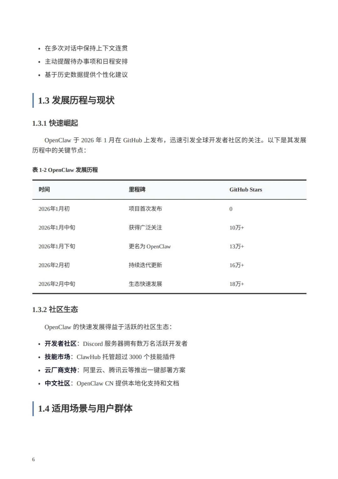 手册中的发展历程表(表1-2)和社区生态描述,勾勒出一个经典的开源成功故事。